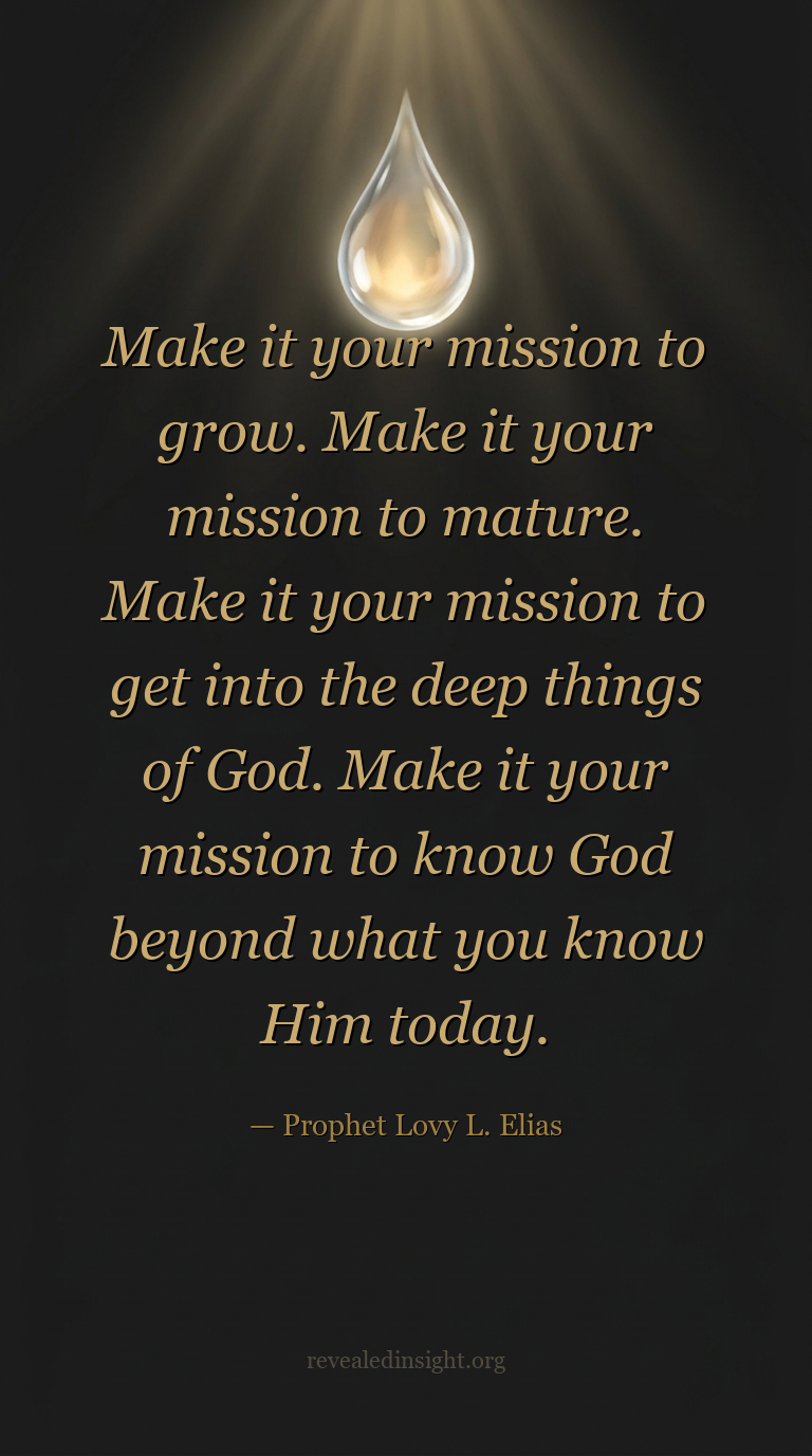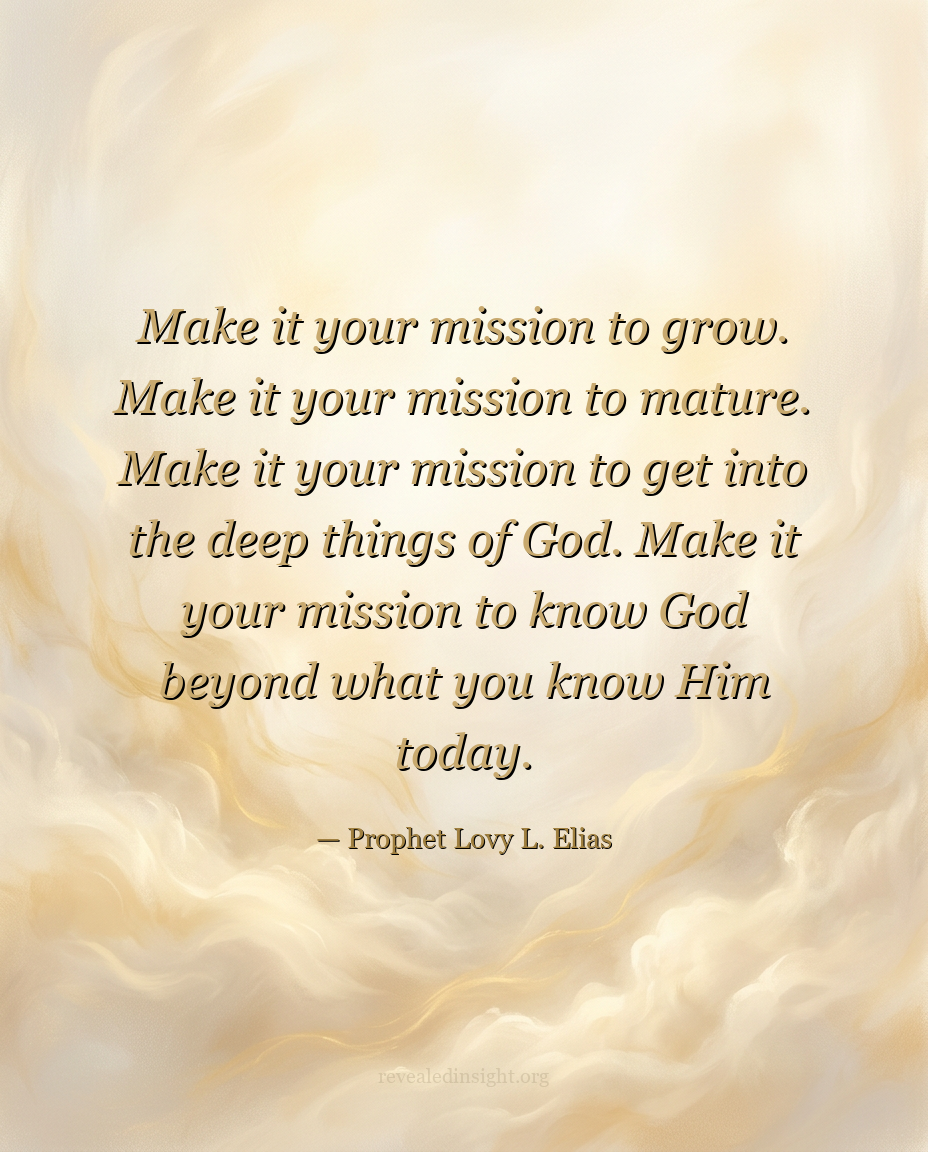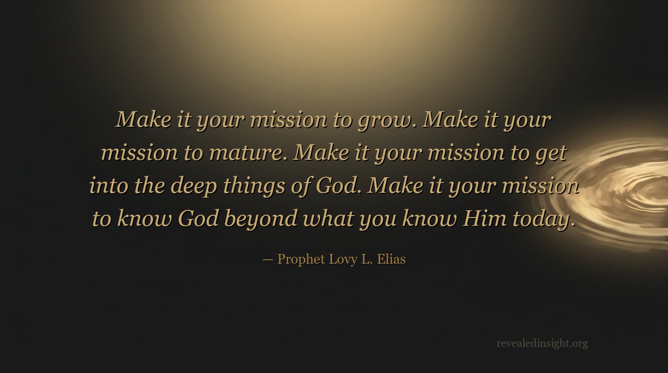 "Make it your mission to grow. Make it your mission to mature. Make it your mission to get into the deep things of God. Make it your mission to know God beyond what you know Him today."