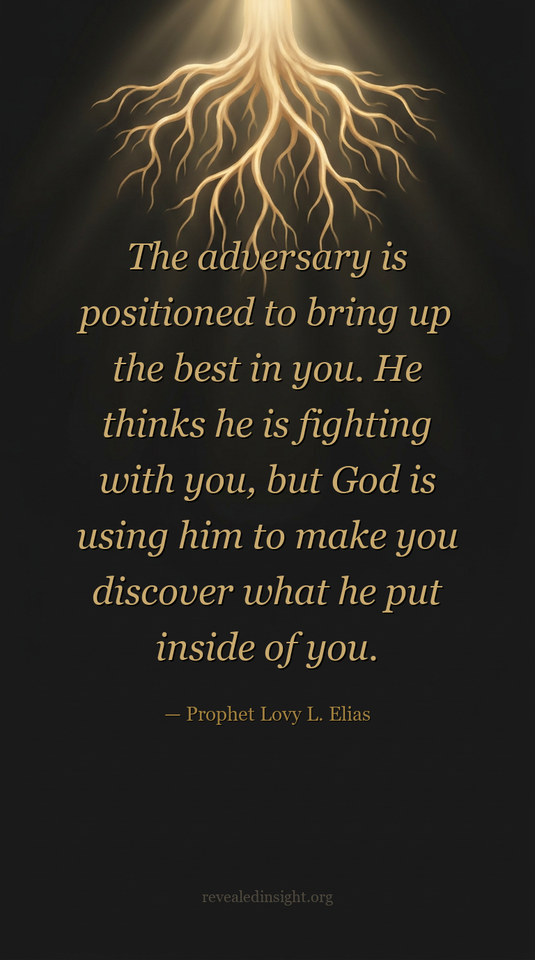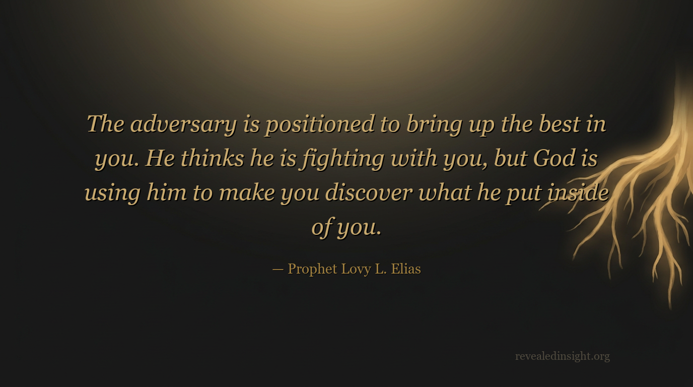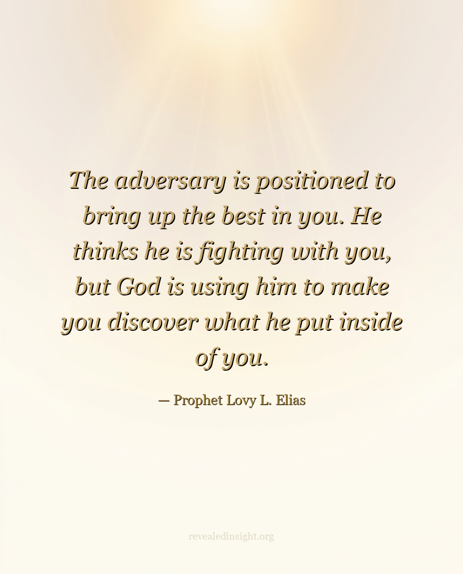 - The adversary is positioned by God to bring out what God has placed inside you; the enemy thinks he is fighting you, but God is using him to provoke your next dimension.