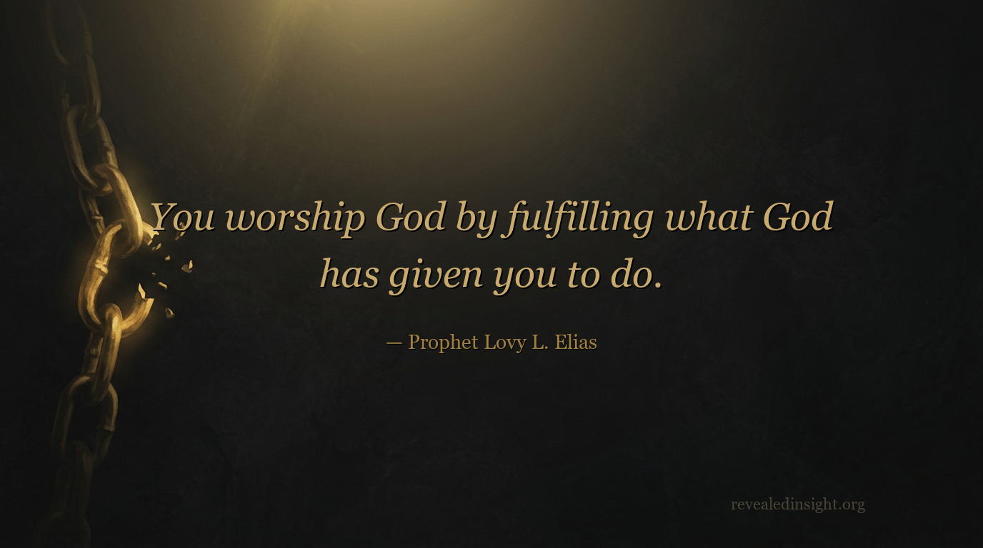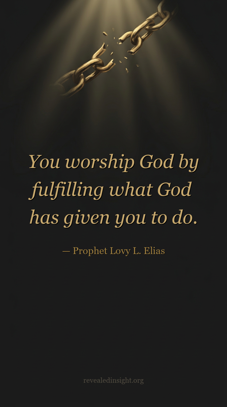 - You worship God by fulfilling what He has given you to do — that is how you bring glory and honor to Him.