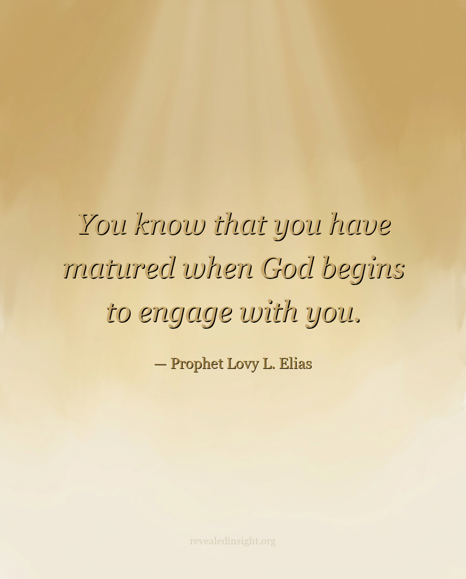 - True change is learning to engage with God, and the sign of maturity is when God begins to engage with you — confiding in you, guiding you, revealing things to you.