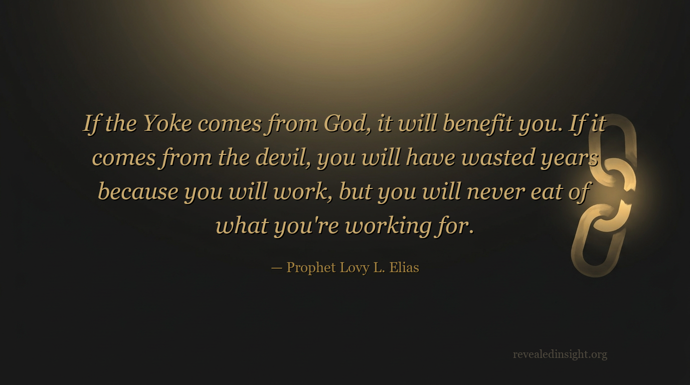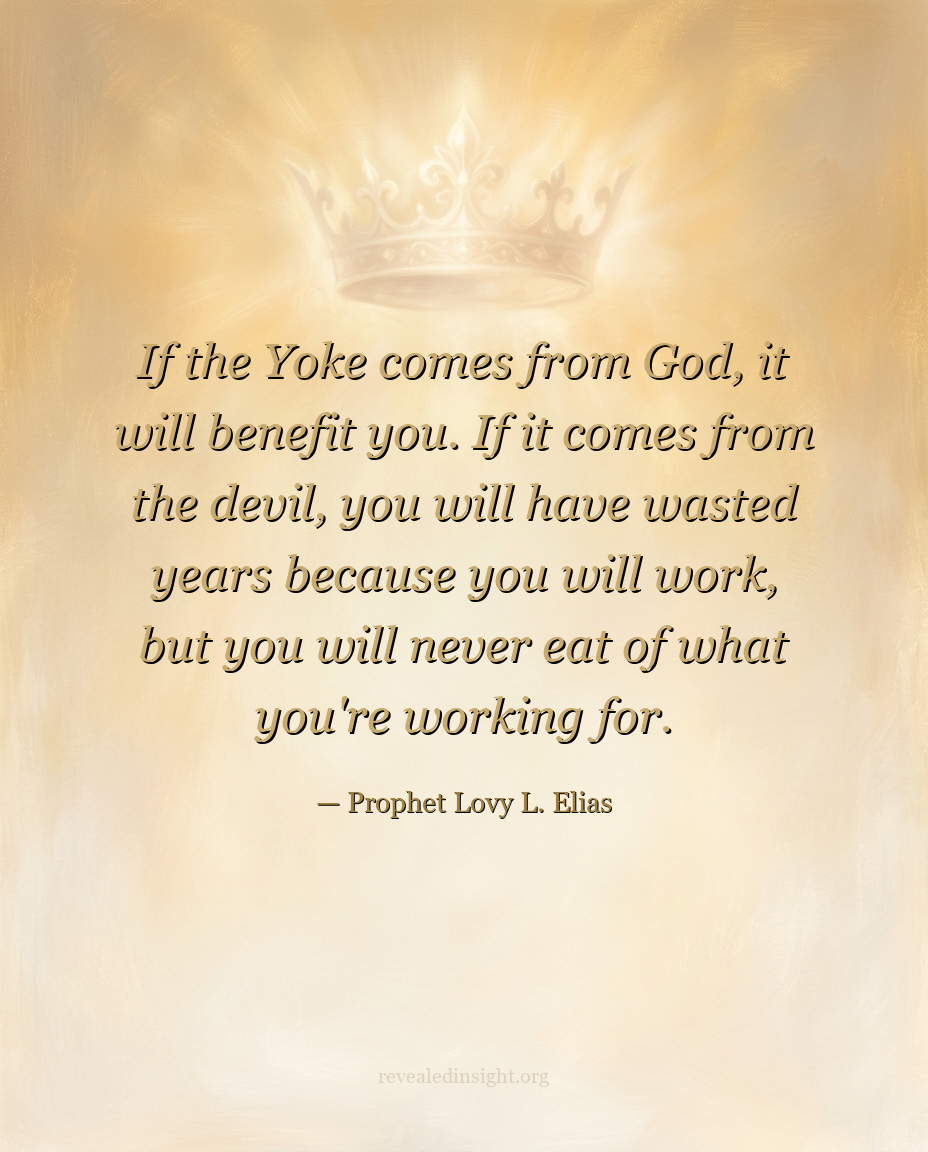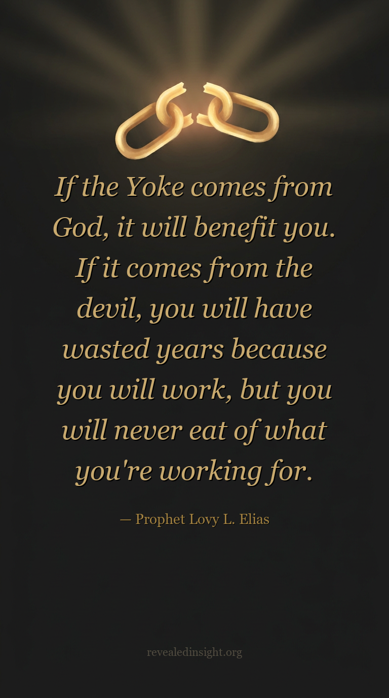 "If the Yoke comes from God, it will benefit you. If it comes from the devil, you will have wasted years because you will work, but you will never eat of what you're working for."