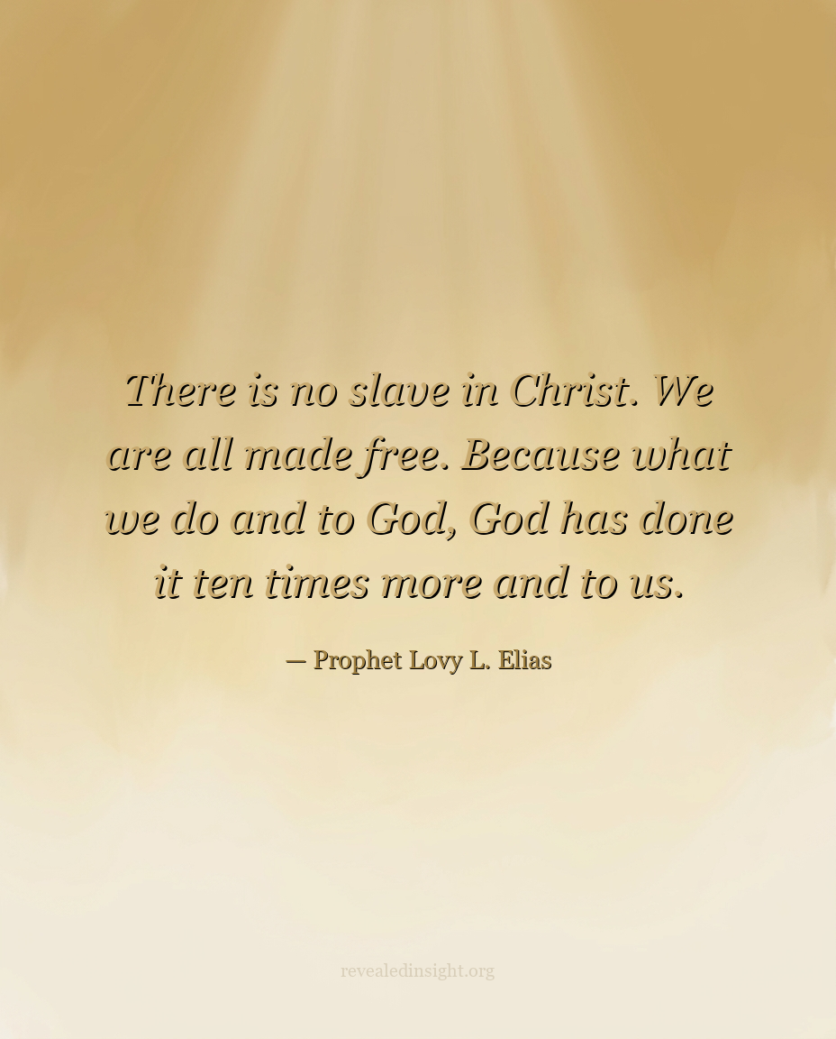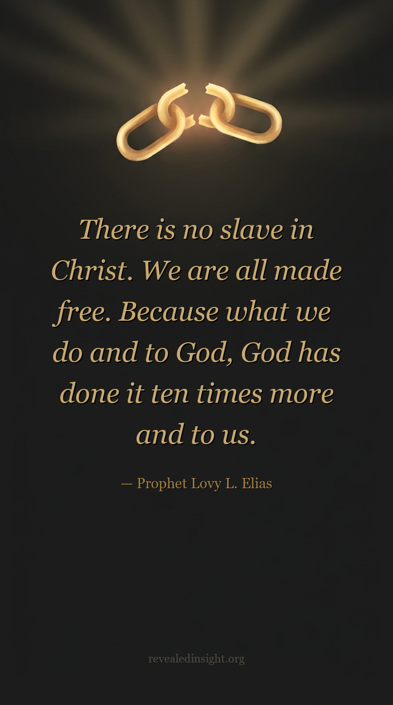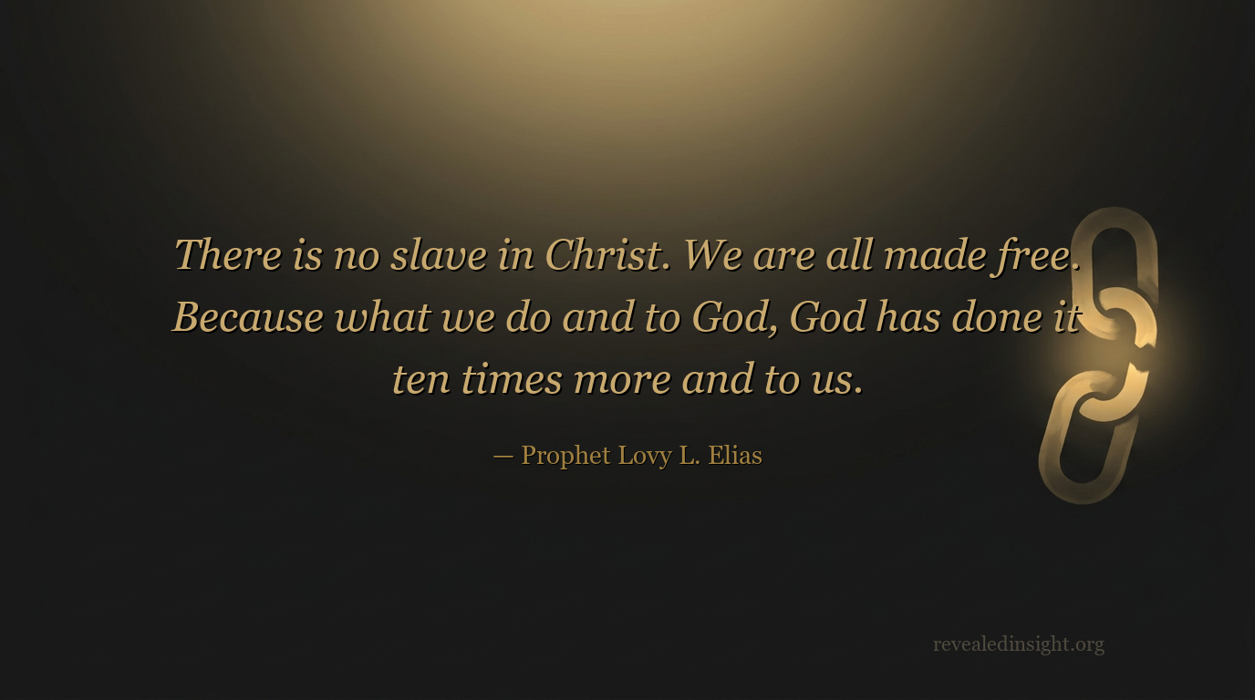 - In Christ, there is no slave — all are made free, because what believers do for God, God returns ten times more.