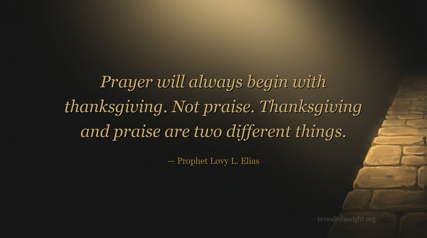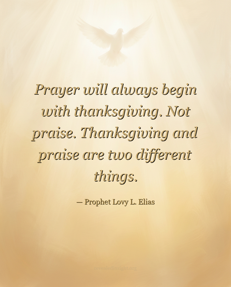 "Prayer will always begin with thanksgiving. Not praise. Thanksgiving and praise are two different things."