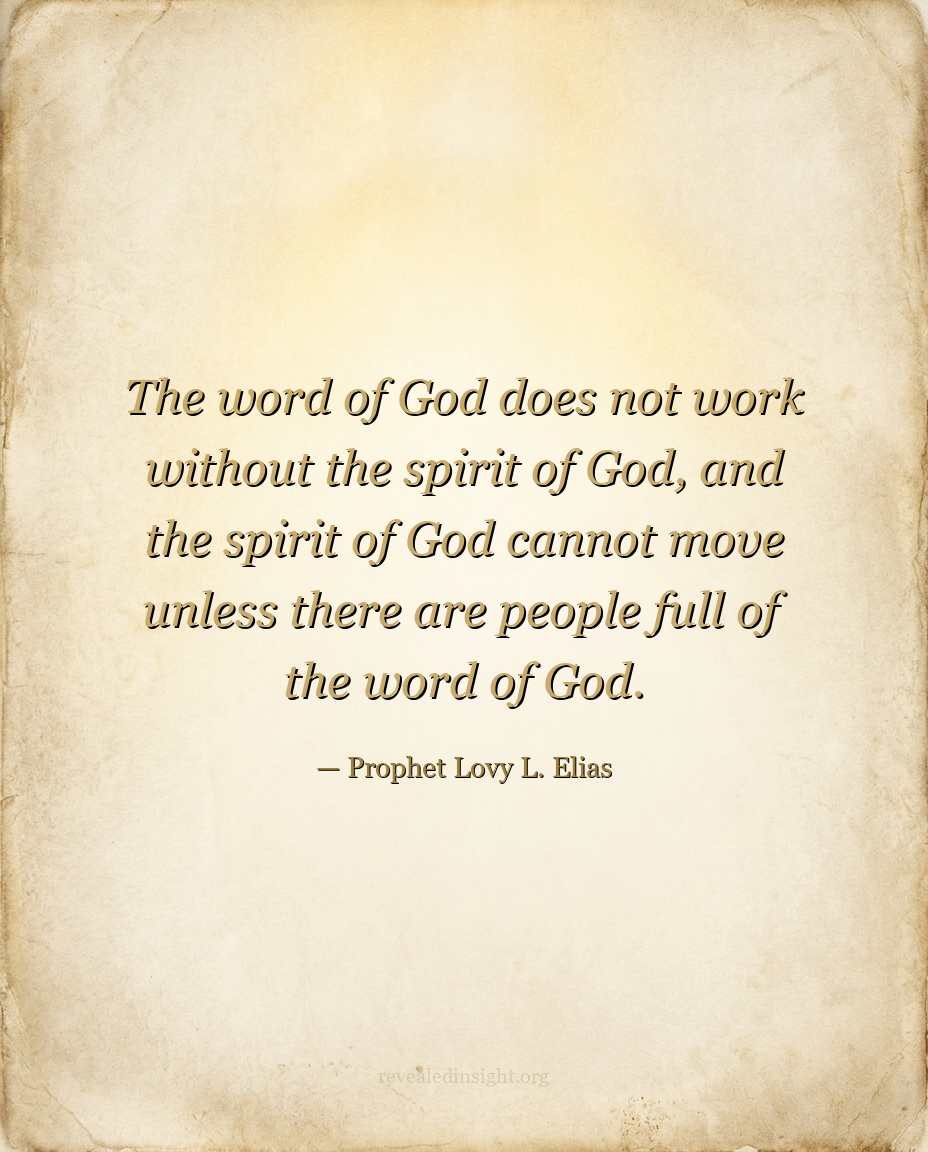 - The Word of God does not work without the Spirit of God, and the Spirit of God cannot move unless there are people full of the Word of God.