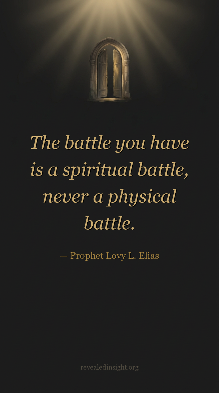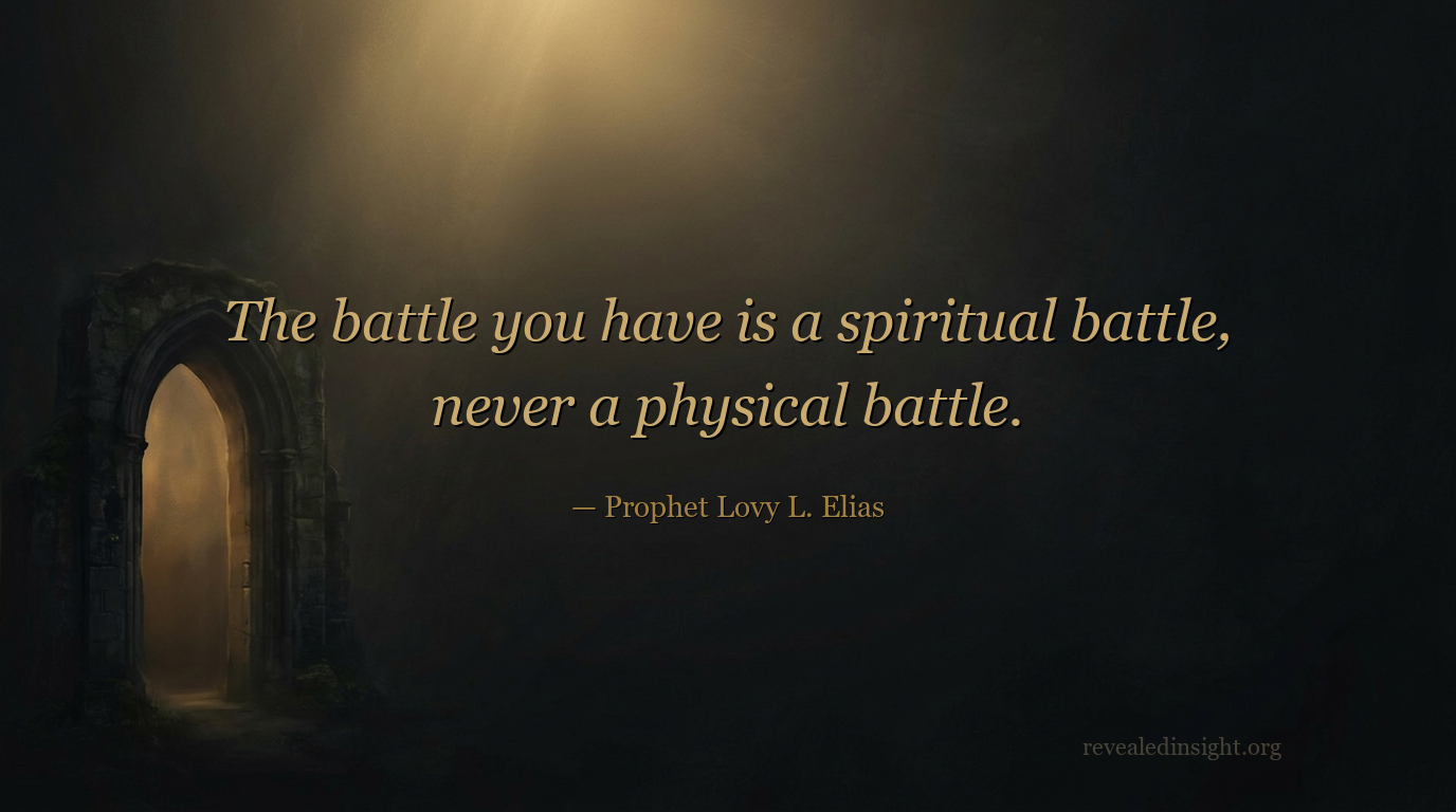 | Where the real battle is | Always here — "the battle you have is a spiritual battle, never a physical battle" | A secondary theatre — the visible expression of who controls the spiritual |