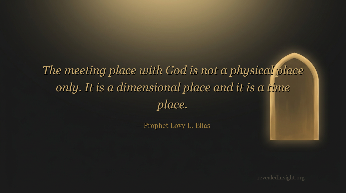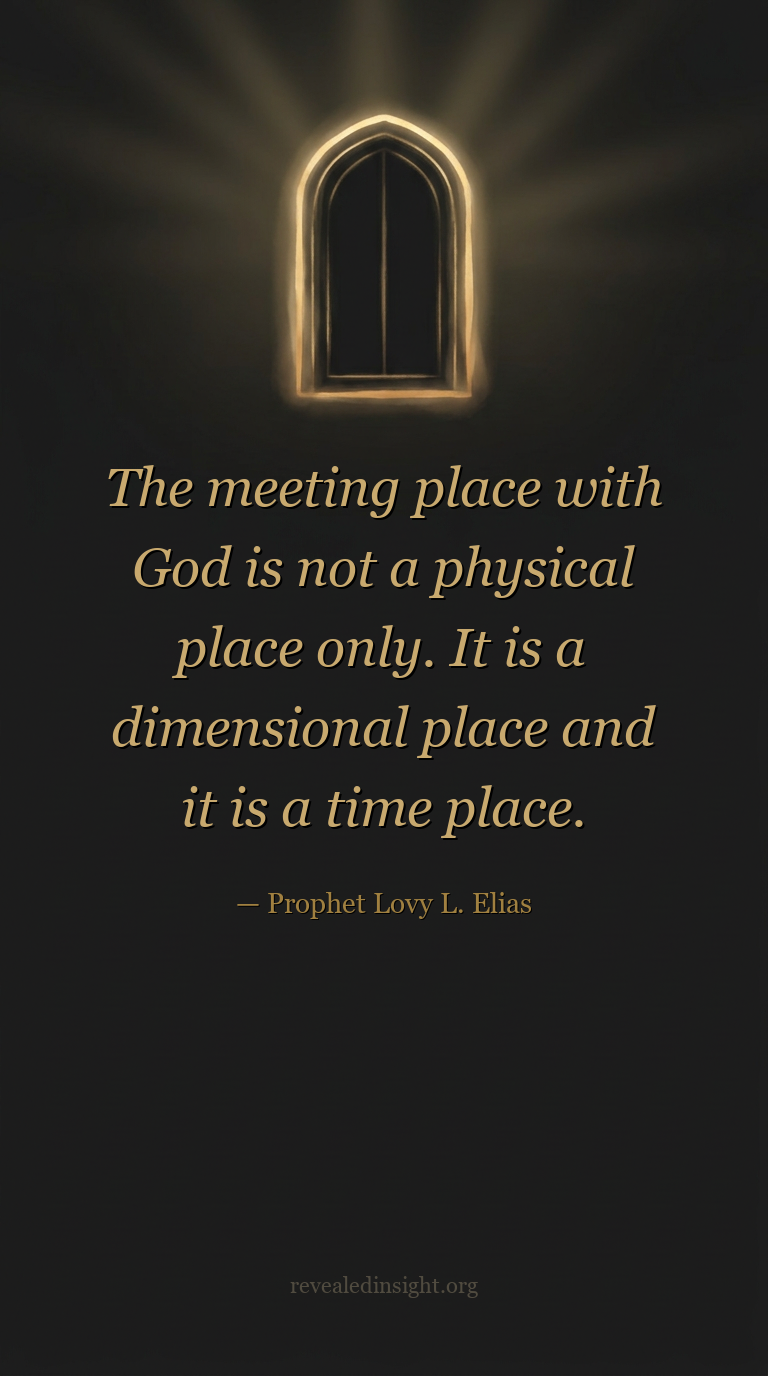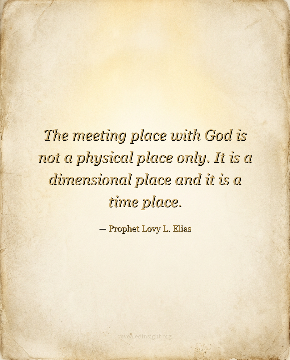 "The meeting place with God is not a physical place only. It is a dimensional place and it is a time place."