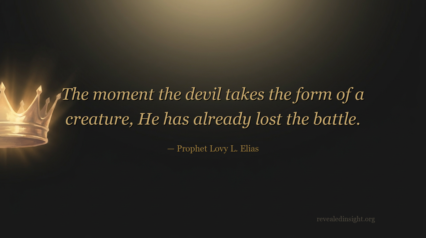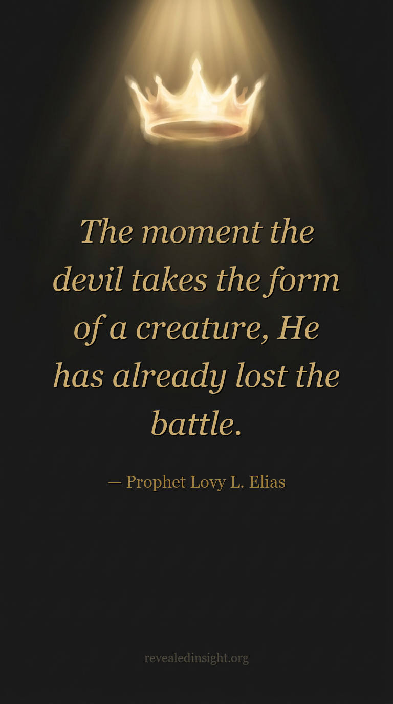 - The devil's greatest weapon is not power — it is deception; the moment you recognise his animal form, you recognise he has already submitted to the hierarchy God ordained.