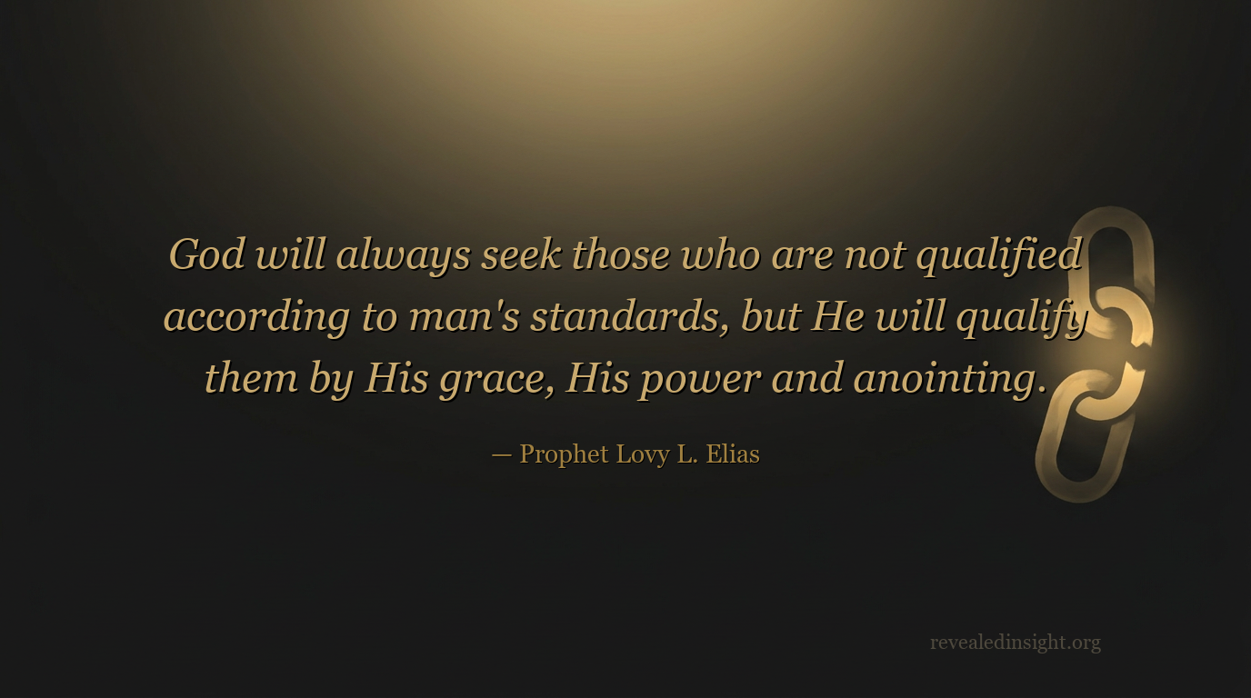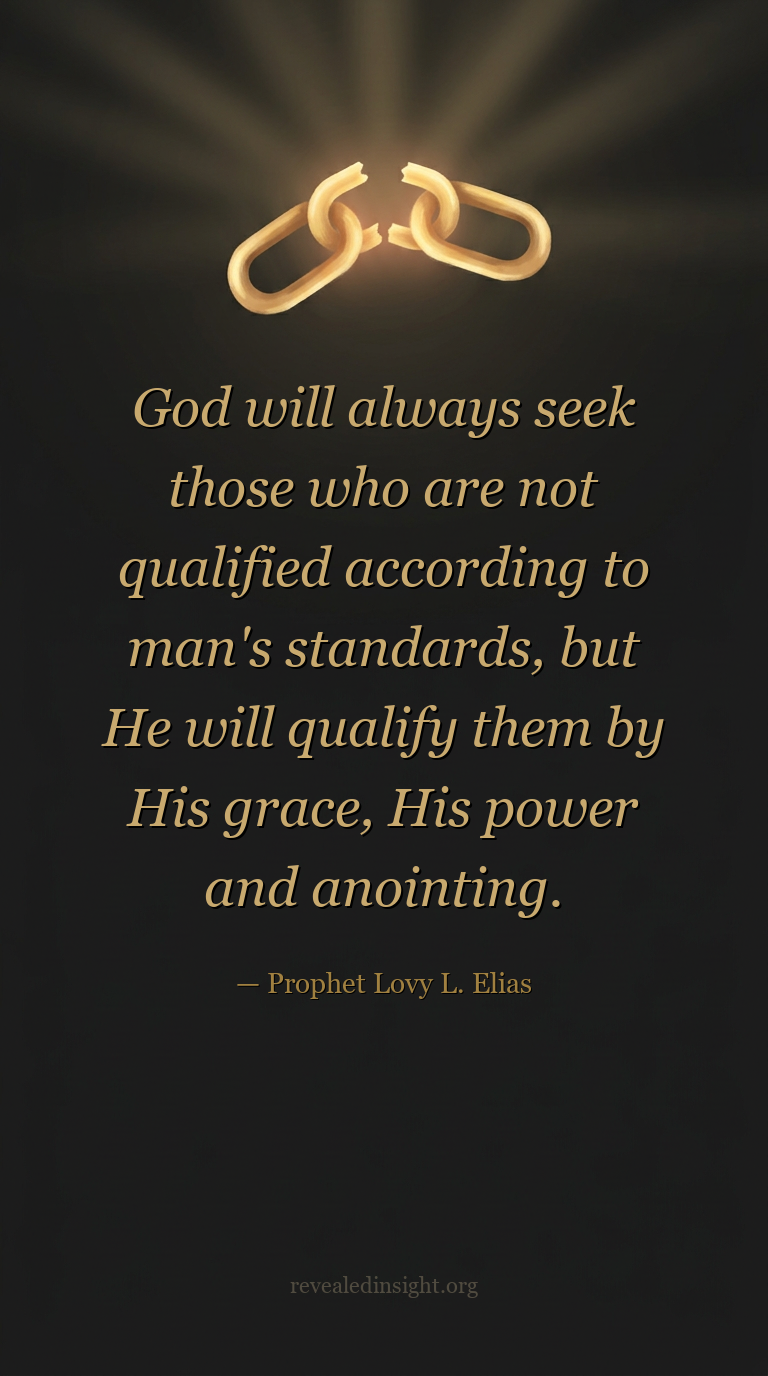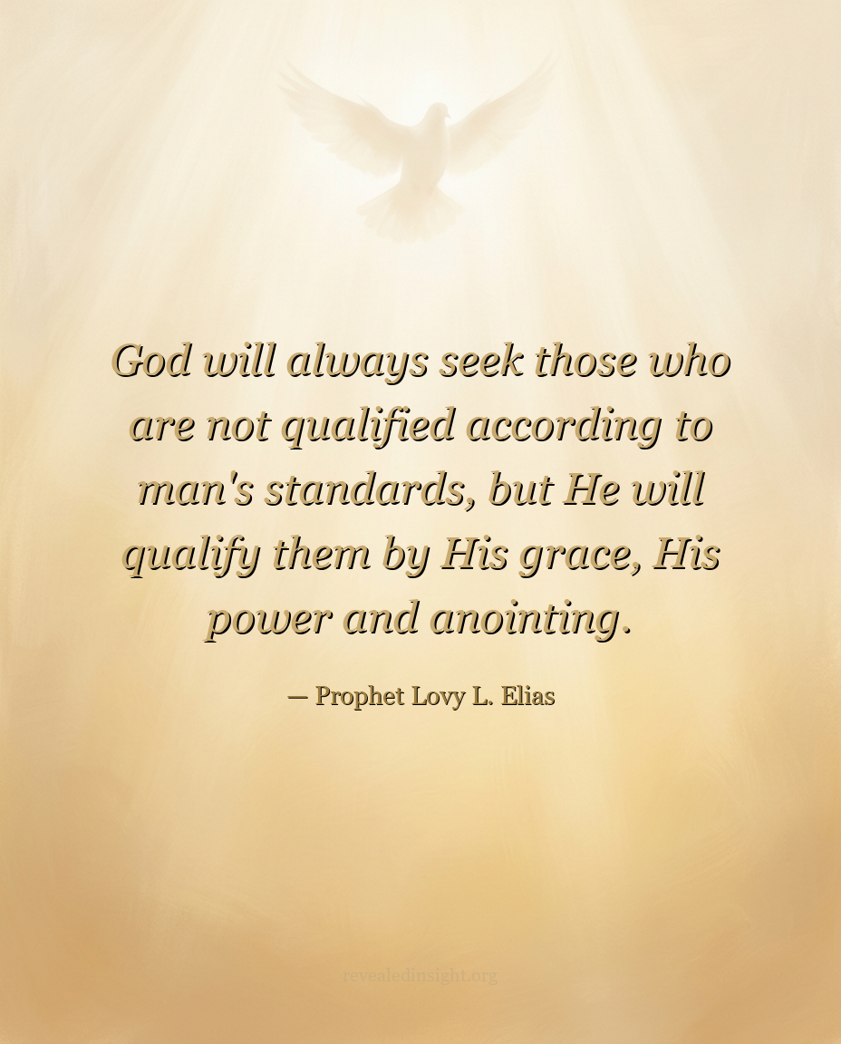 "God will always seek those who are not qualified according to man's standards, but He will qualify them by His grace, His power and anointing."