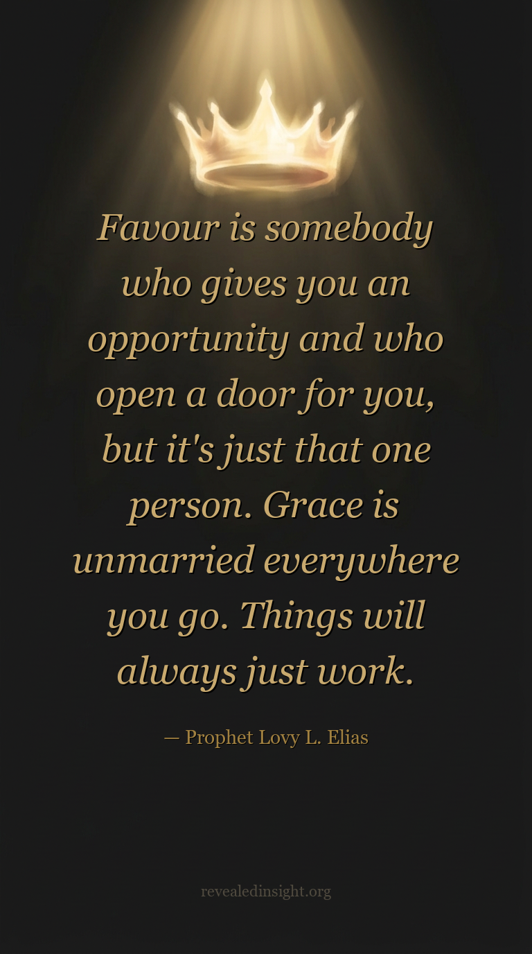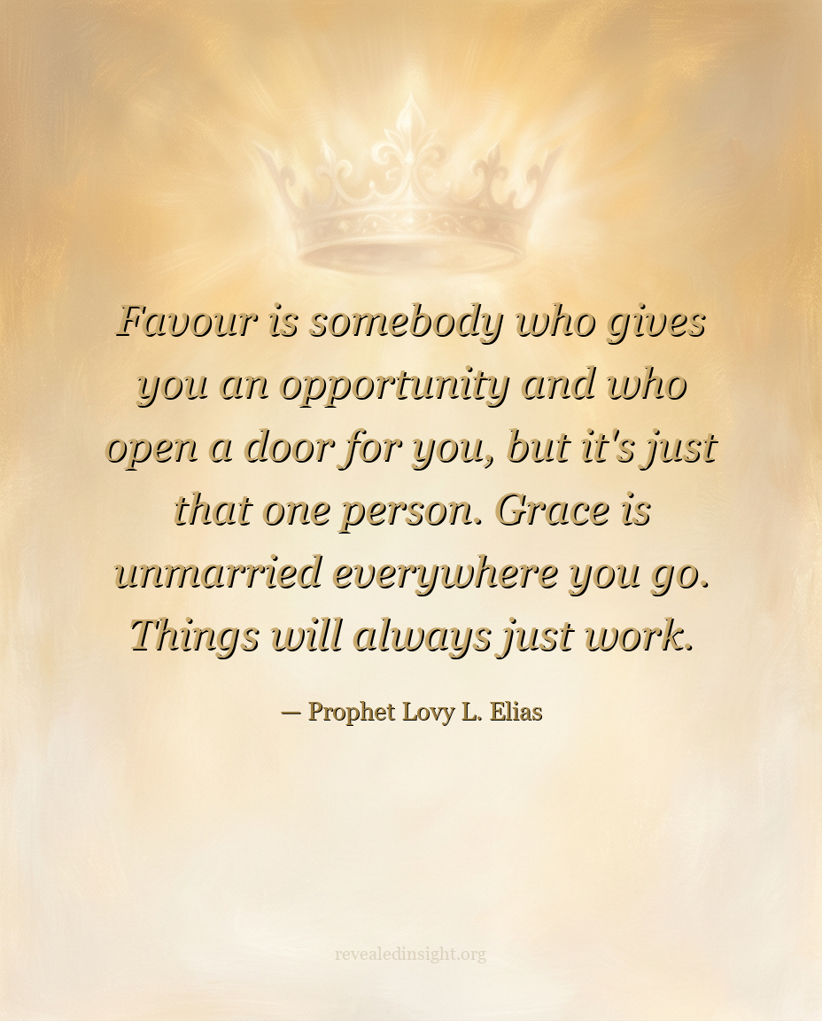 "Favour is somebody who gives you an opportunity and who open a door for you, but it's just that one person. Grace is unmarried everywhere you go. Things will always just work."