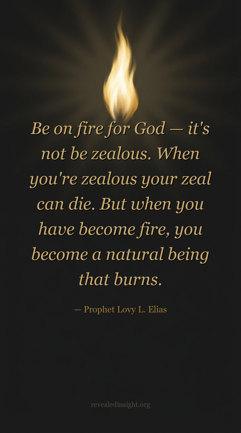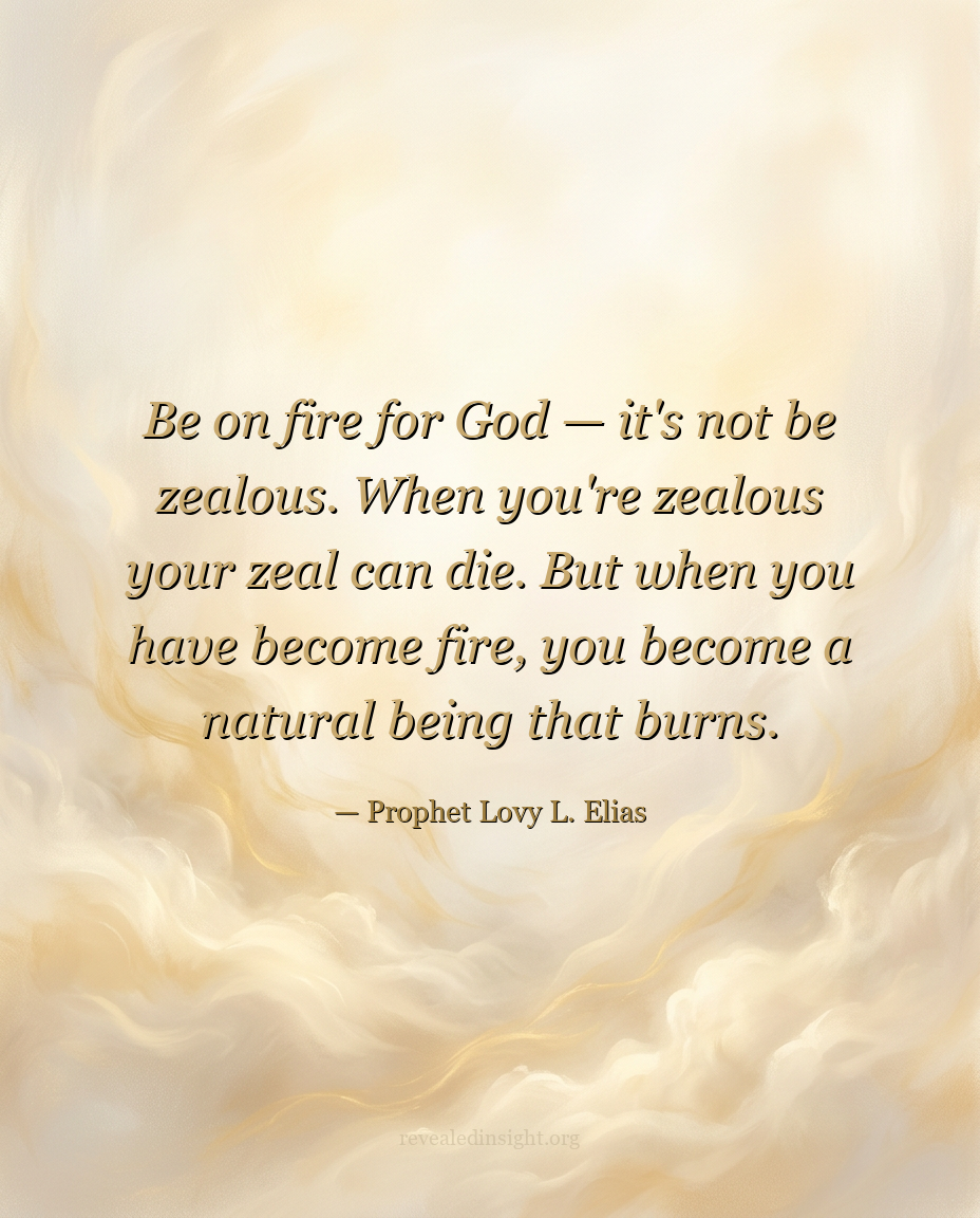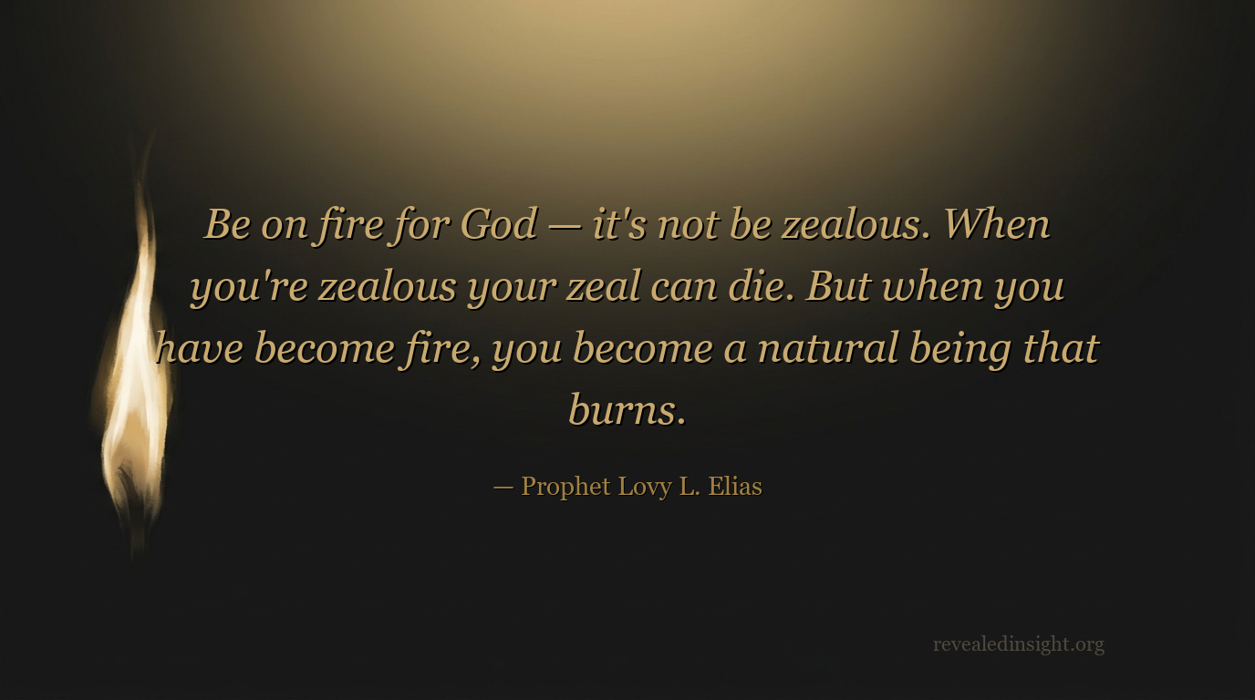 - Being on fire for God is not zealousness — zeal can die, but when a believer has become fire, they become a natural being that burns.