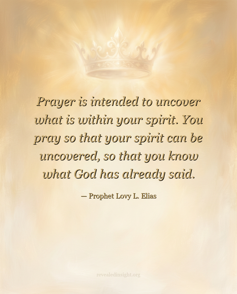 "Prayer is intended to uncover what is within your spirit. You pray so that your spirit can be uncovered, so that you know what God has already said."