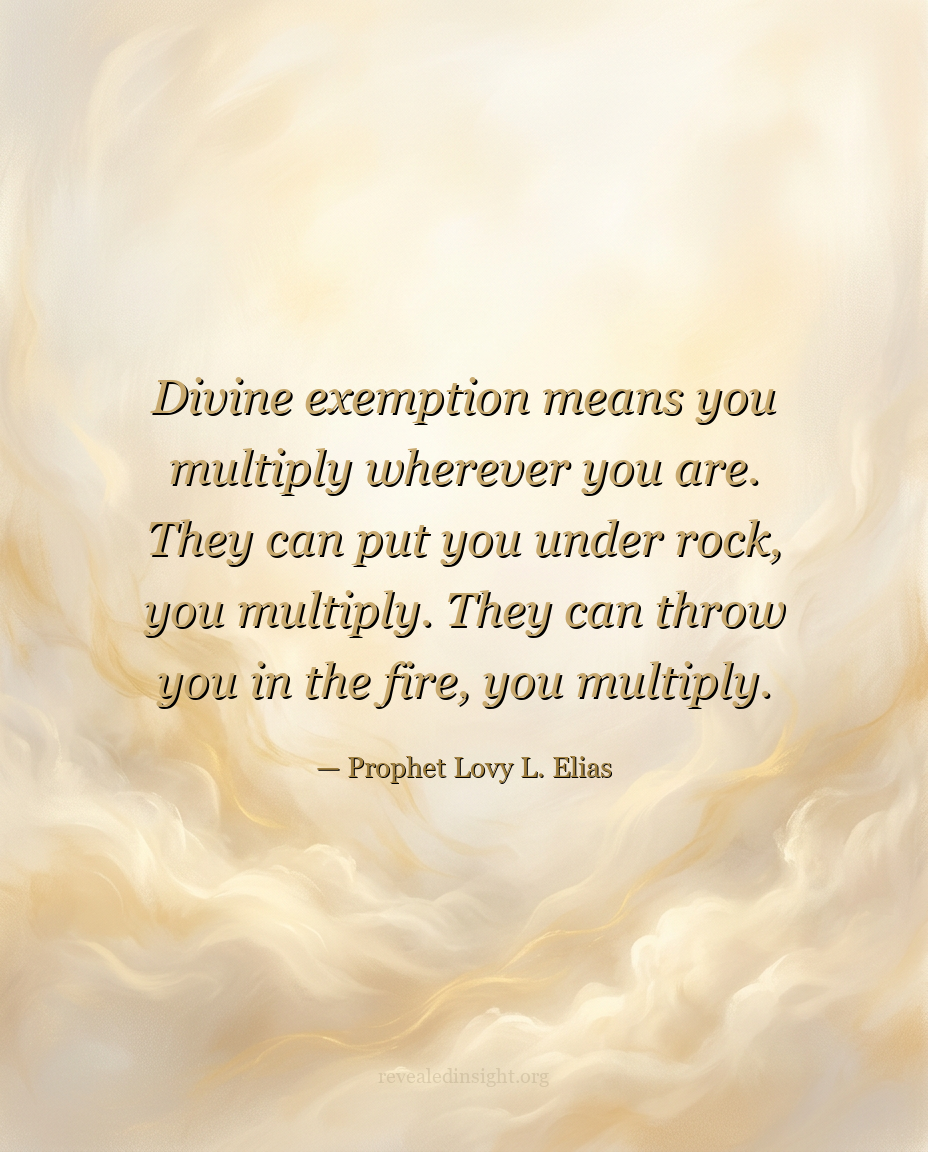 "Divine exemption means you multiply wherever you are. They can put you under rock, you multiply. They can throw you in the fire, you multiply."