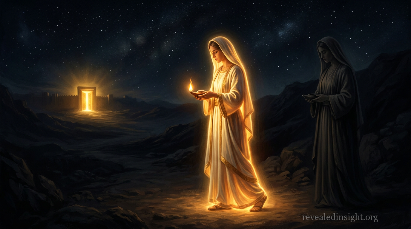 | Who holds it | Both wise and foolish virgins — all believers | Only the wise virgins — those who pursued internal transformation |