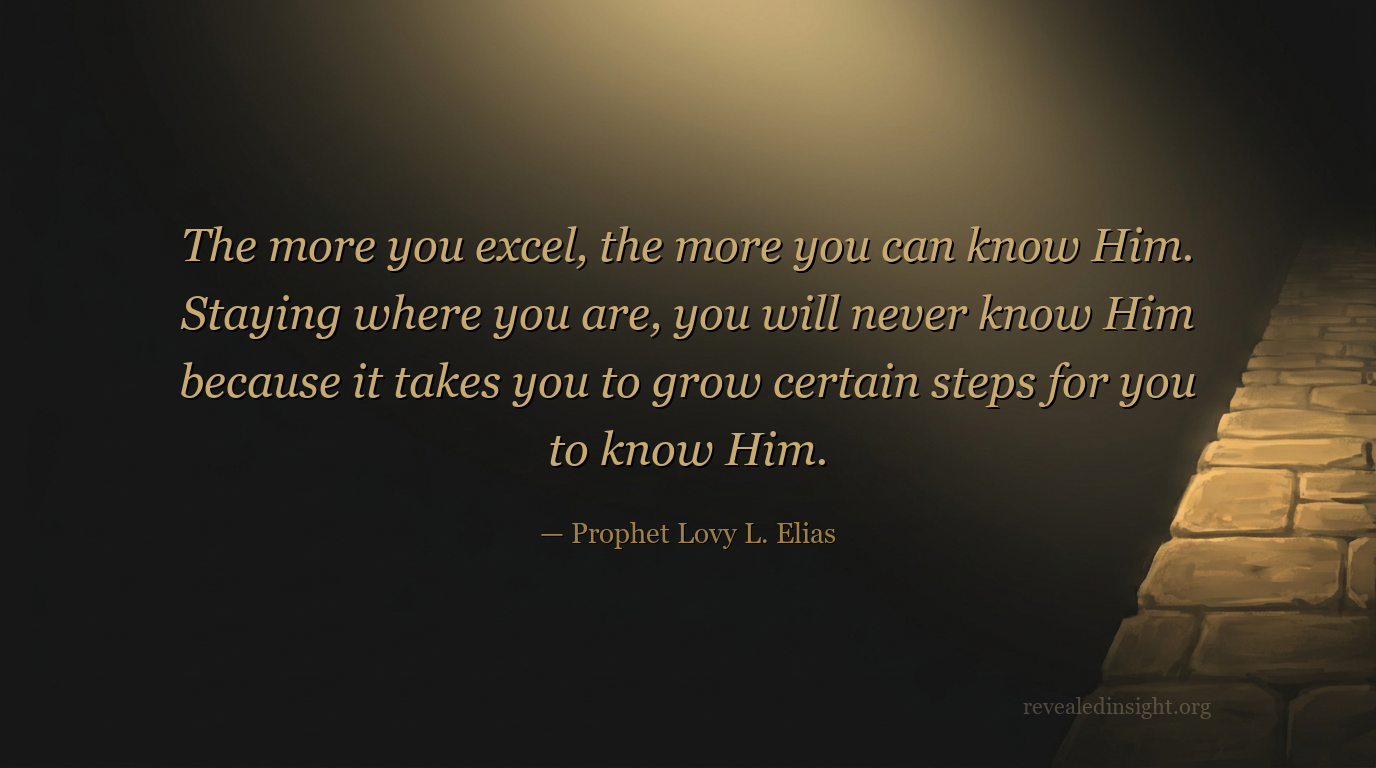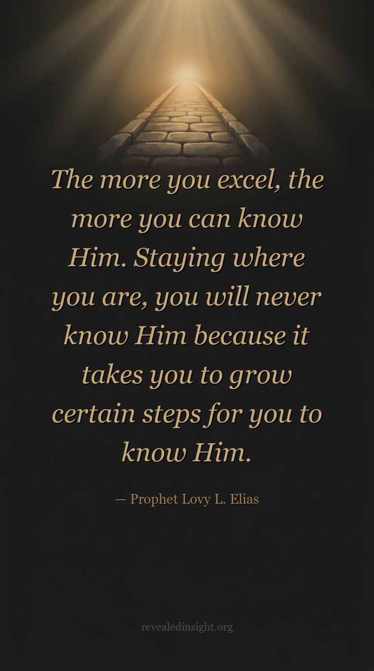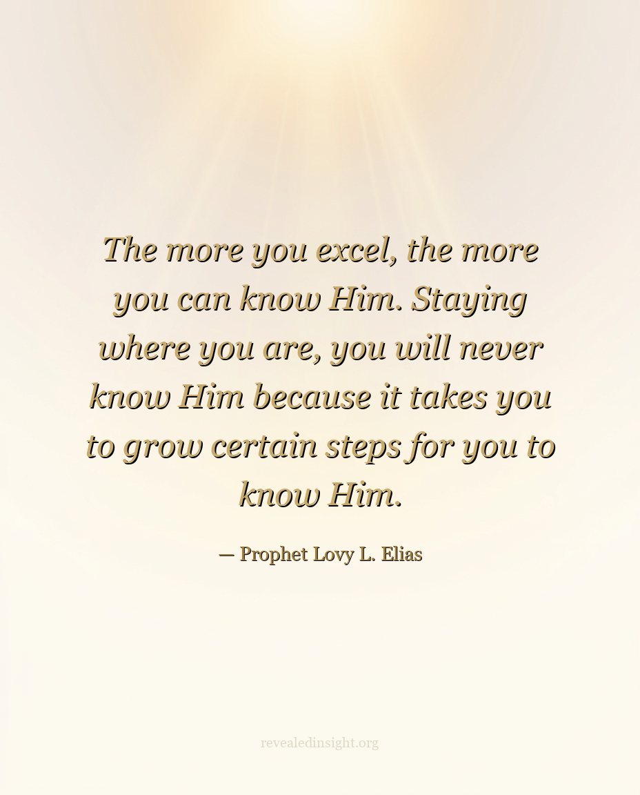 "The more you excel, the more you can know Him. Staying where you are, you will never know Him because it takes you to grow certain steps for you to know Him."