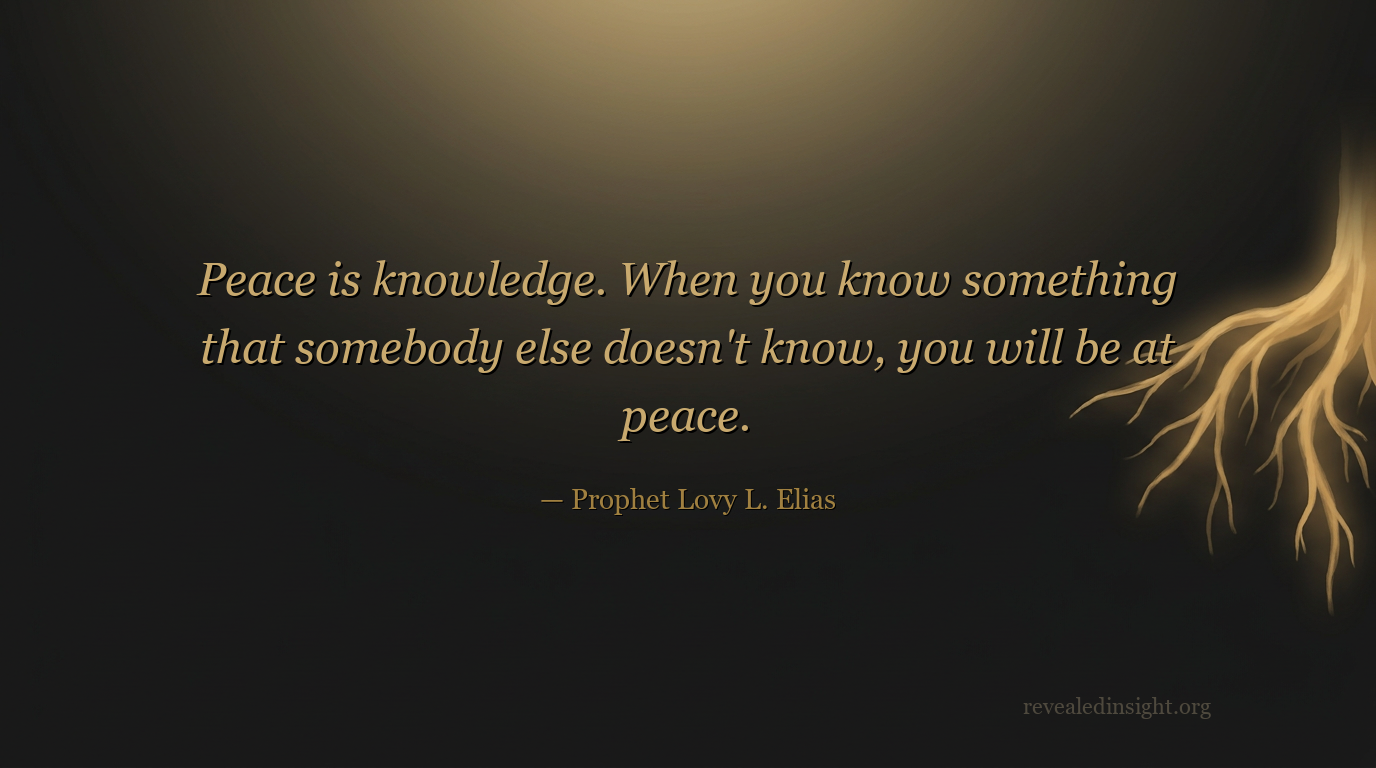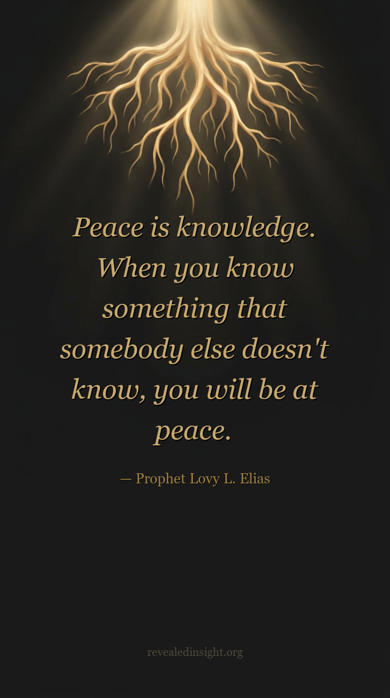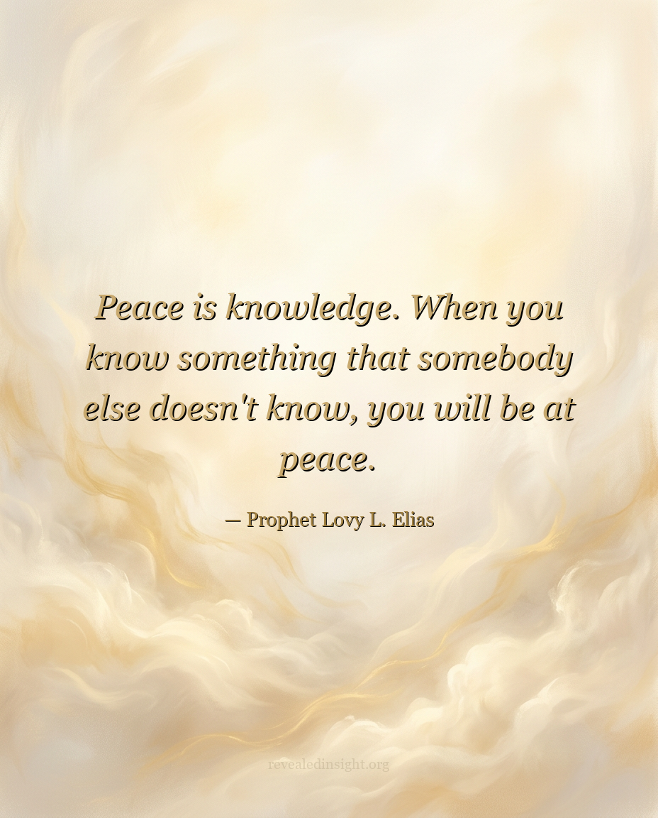 "Peace is knowledge. When you know something that somebody else doesn't know, you will be at peace."