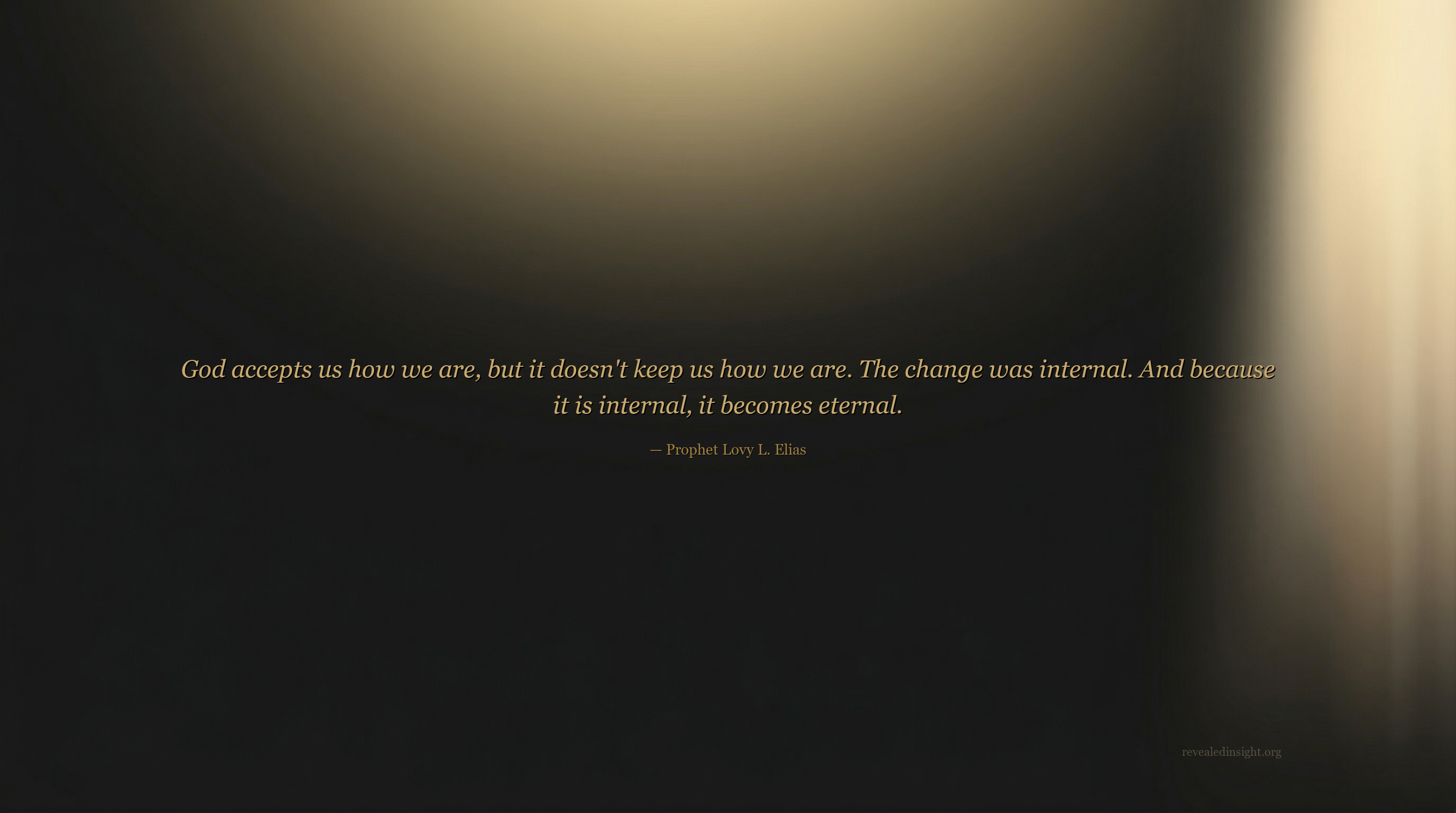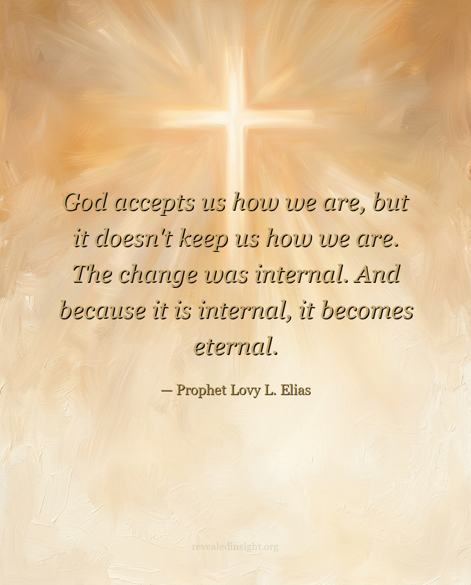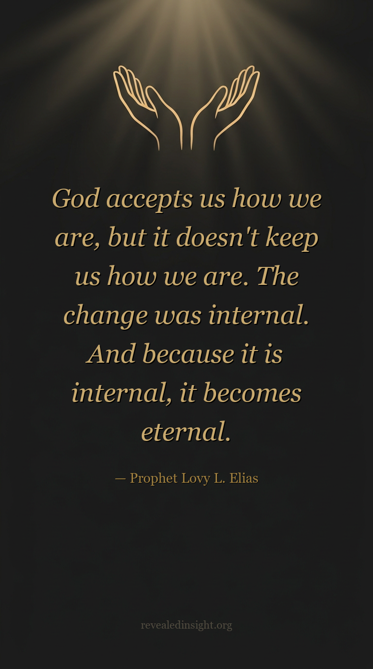 "God accepts us how we are, but it doesn't keep us how we are. The change was internal. And because it is internal, it becomes eternal."