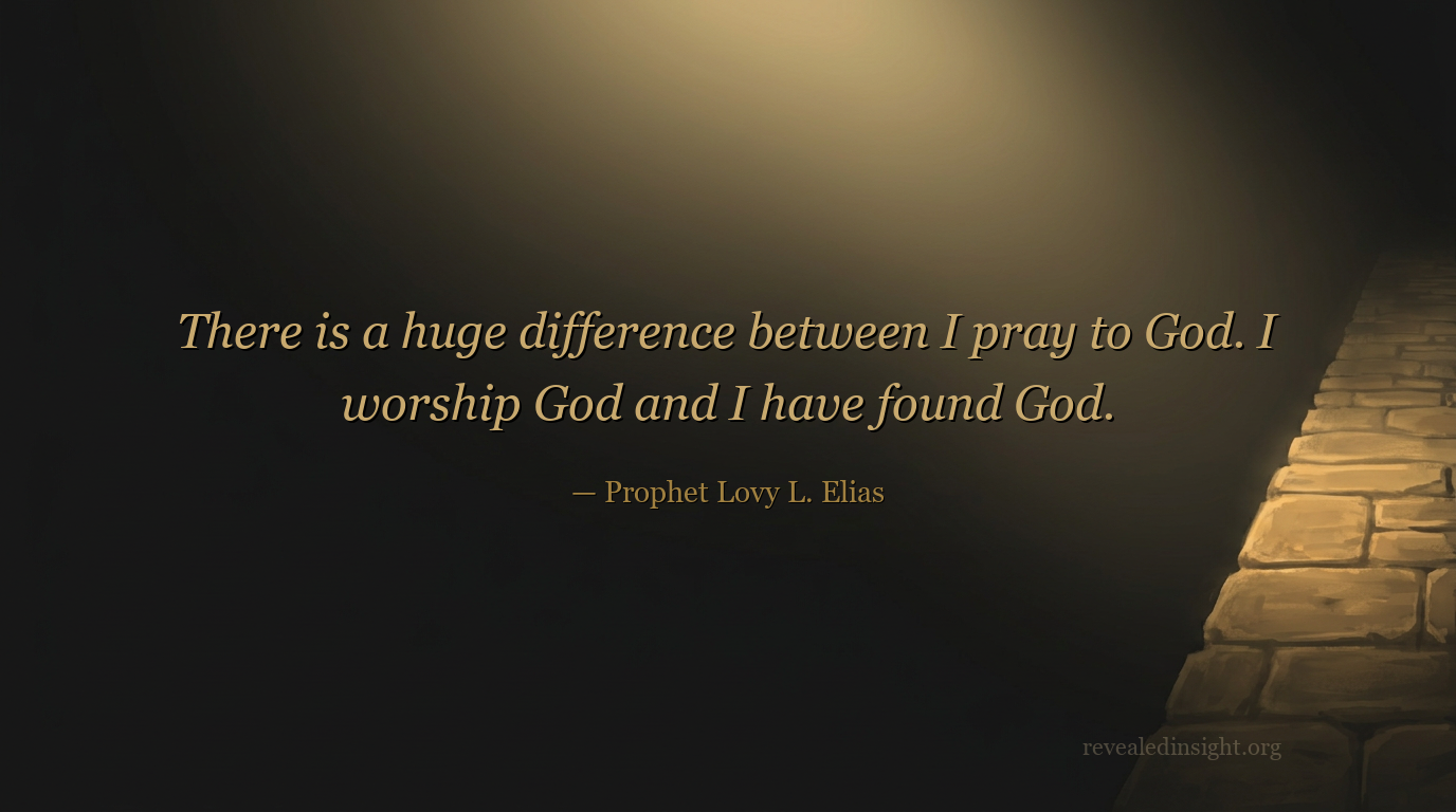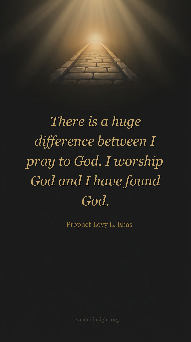 - There is a huge difference between "I pray to God," "I worship God," and "I have found God"; the first two are processes, the third is an encounter.