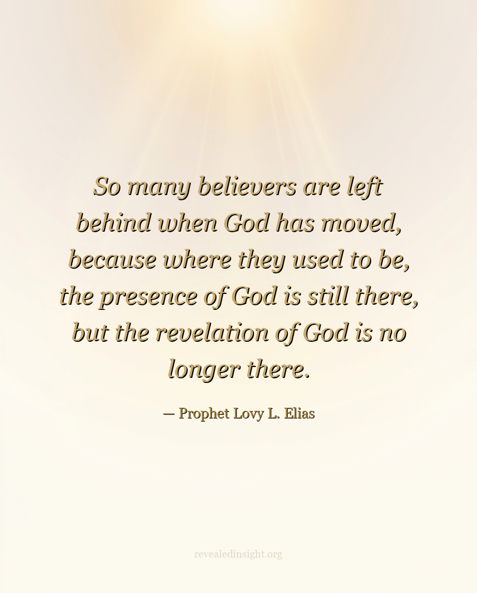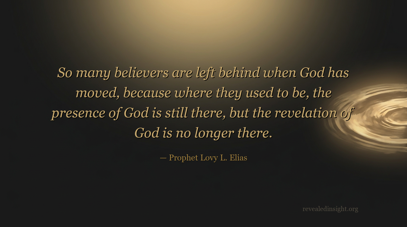 - So many believers are left behind when God has moved, because where they used to be, the presence of God is still there — but the revelation of God is no longer there.