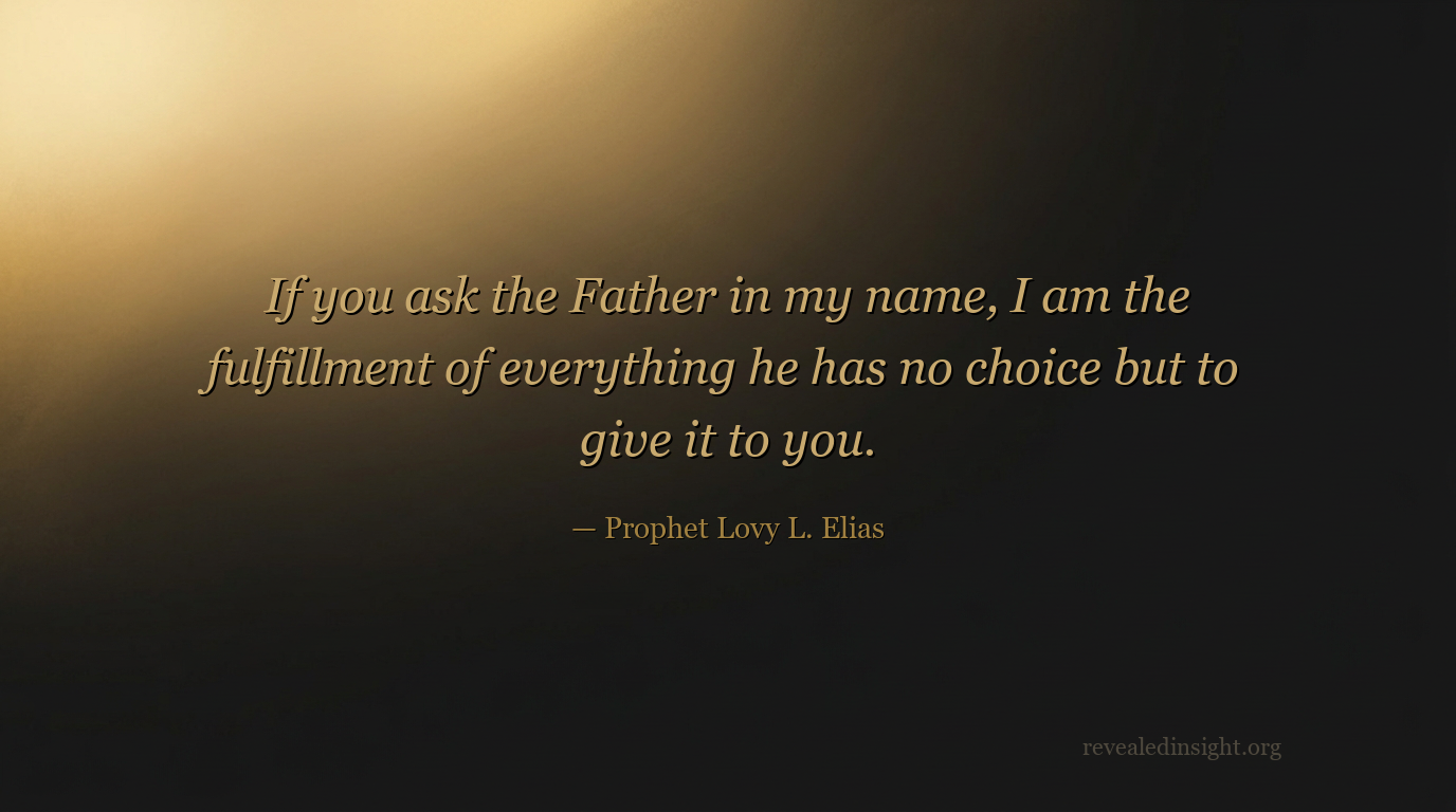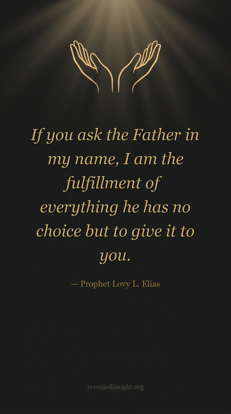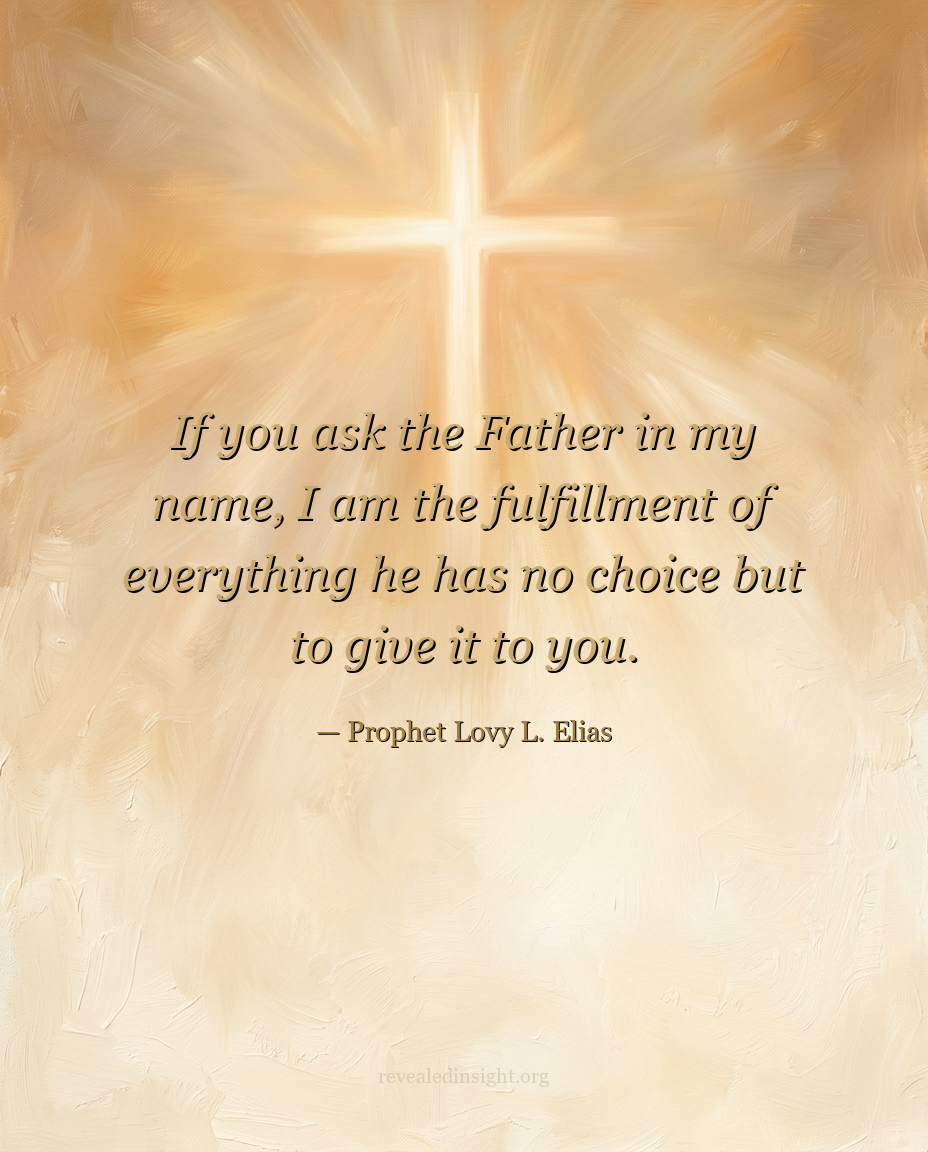 "If you ask the Father in my name, I am the fulfillment of everything he has no choice but to give it to you."