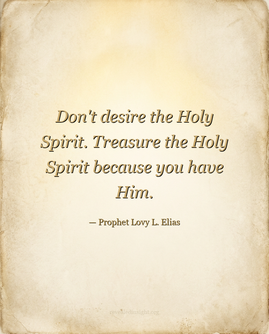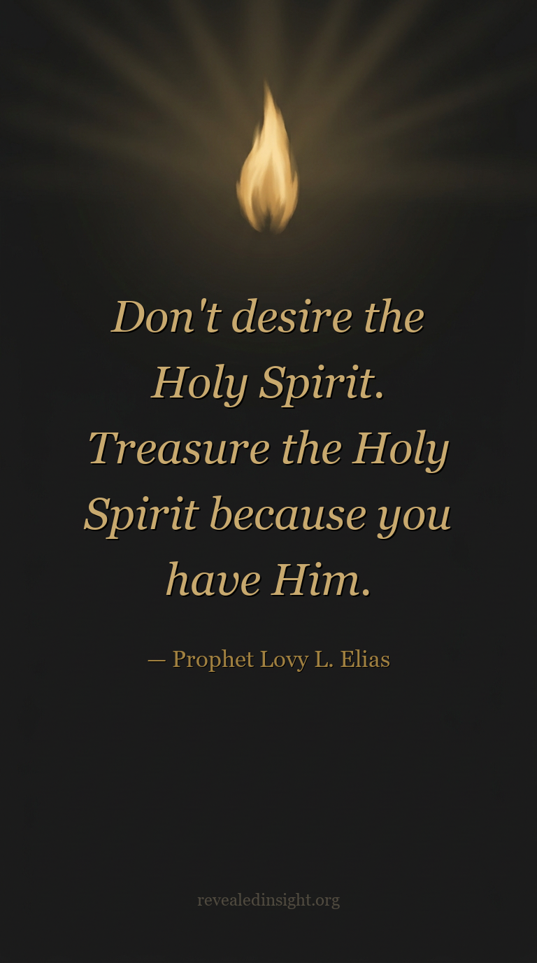 "Don't desire the Holy Spirit. Treasure the Holy Spirit because you have Him."