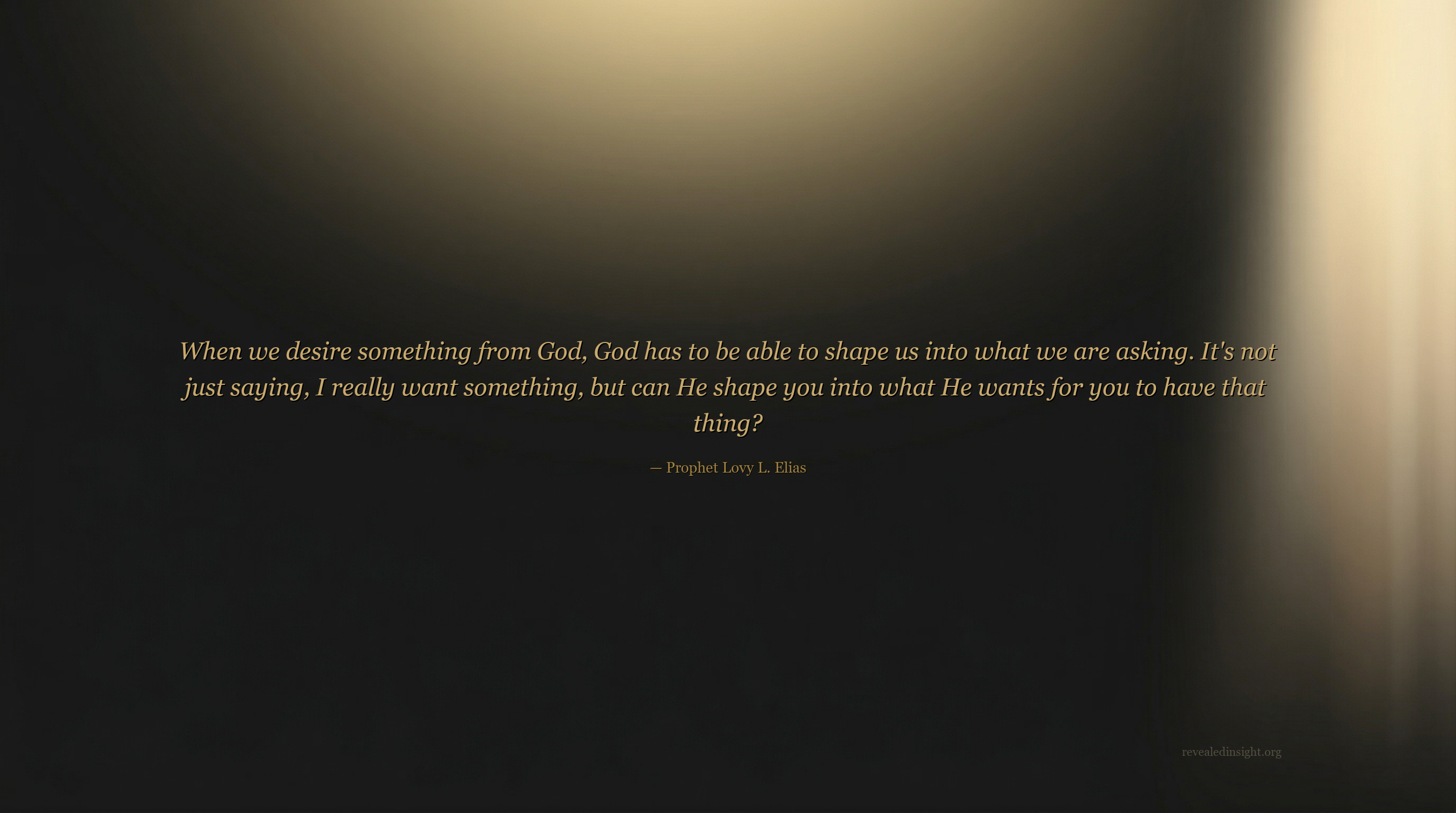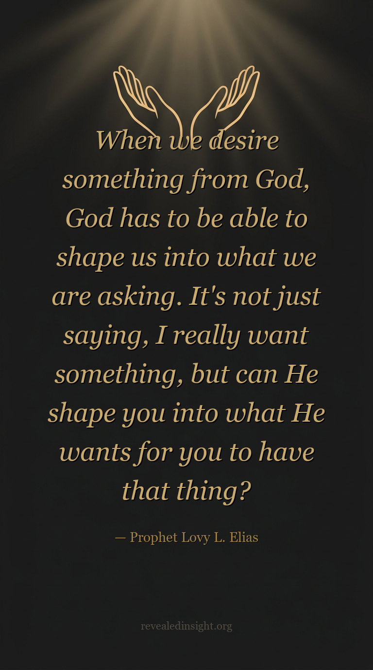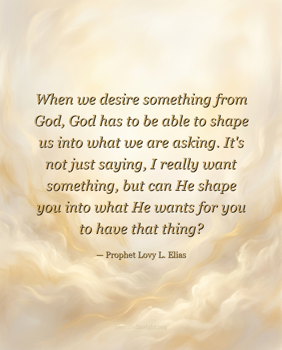 - Desiring something from God means allowing Him to shape you into what you are asking for — it is not obsession or declaration alone, but pliability before the One who is giving.