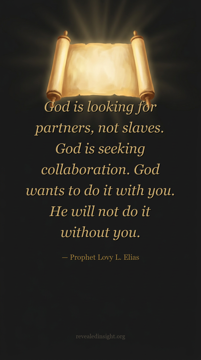 - God is not looking for slaves — He is looking for partners who collaborate with Him in the fulfillment of His purpose.
