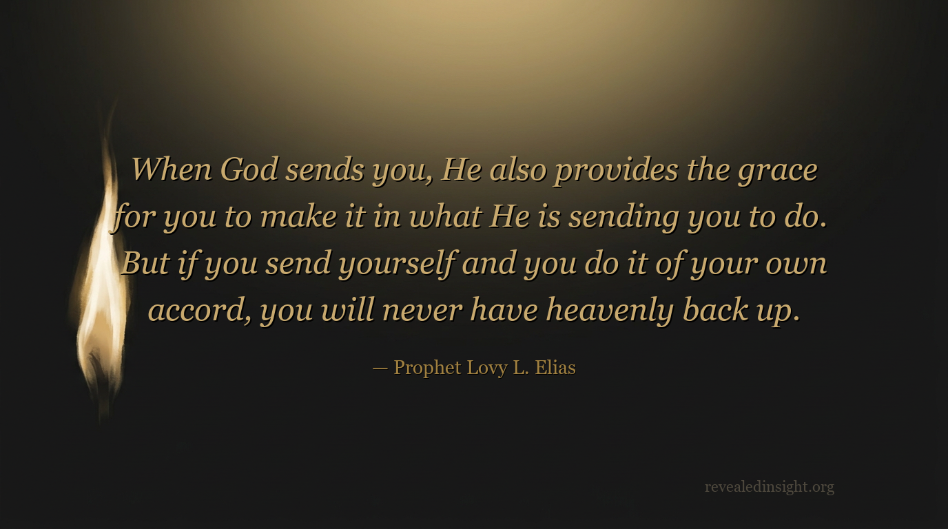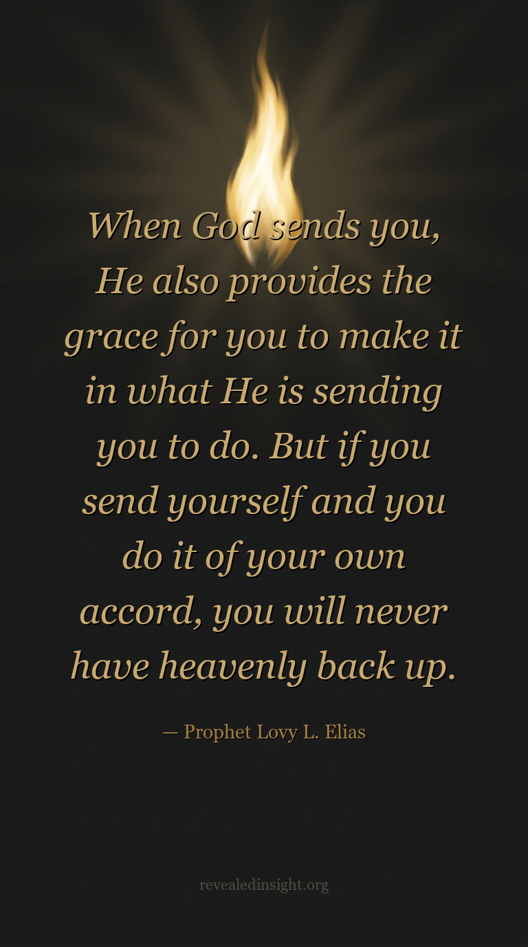 "When God sends you, He also provides the grace for you to make it in what He is sending you to do. But if you send yourself and you do it of your own accord, you will never have heavenly back up."
