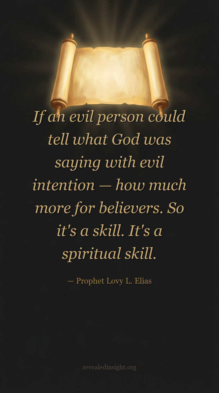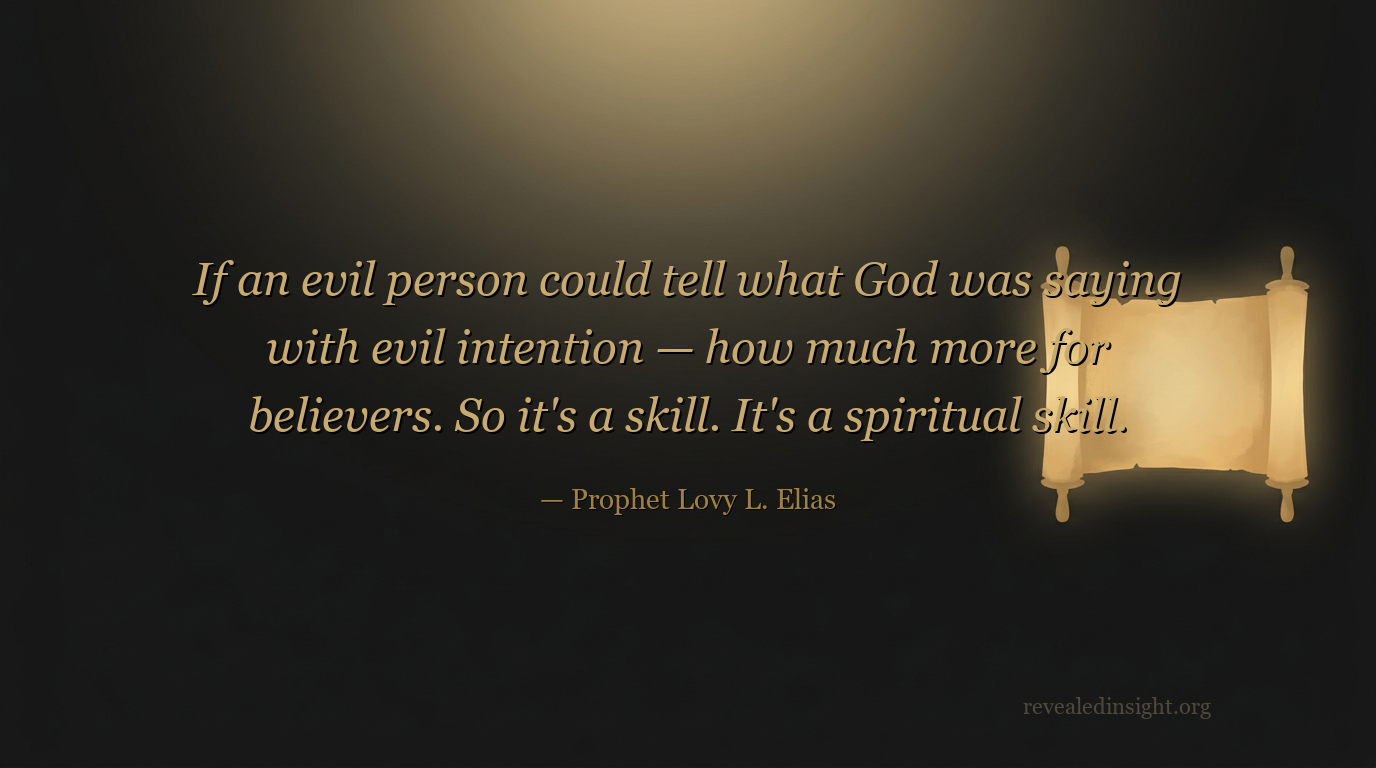 "If an evil person could tell what God was saying with evil intention, could know — how much more for believers. So it's a skill. It's a spiritual skill."