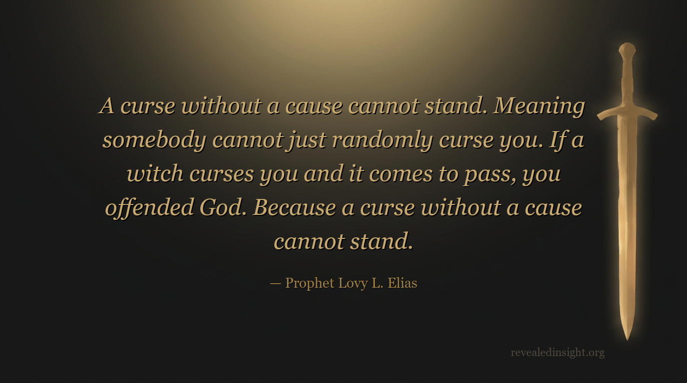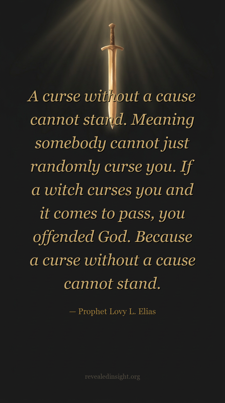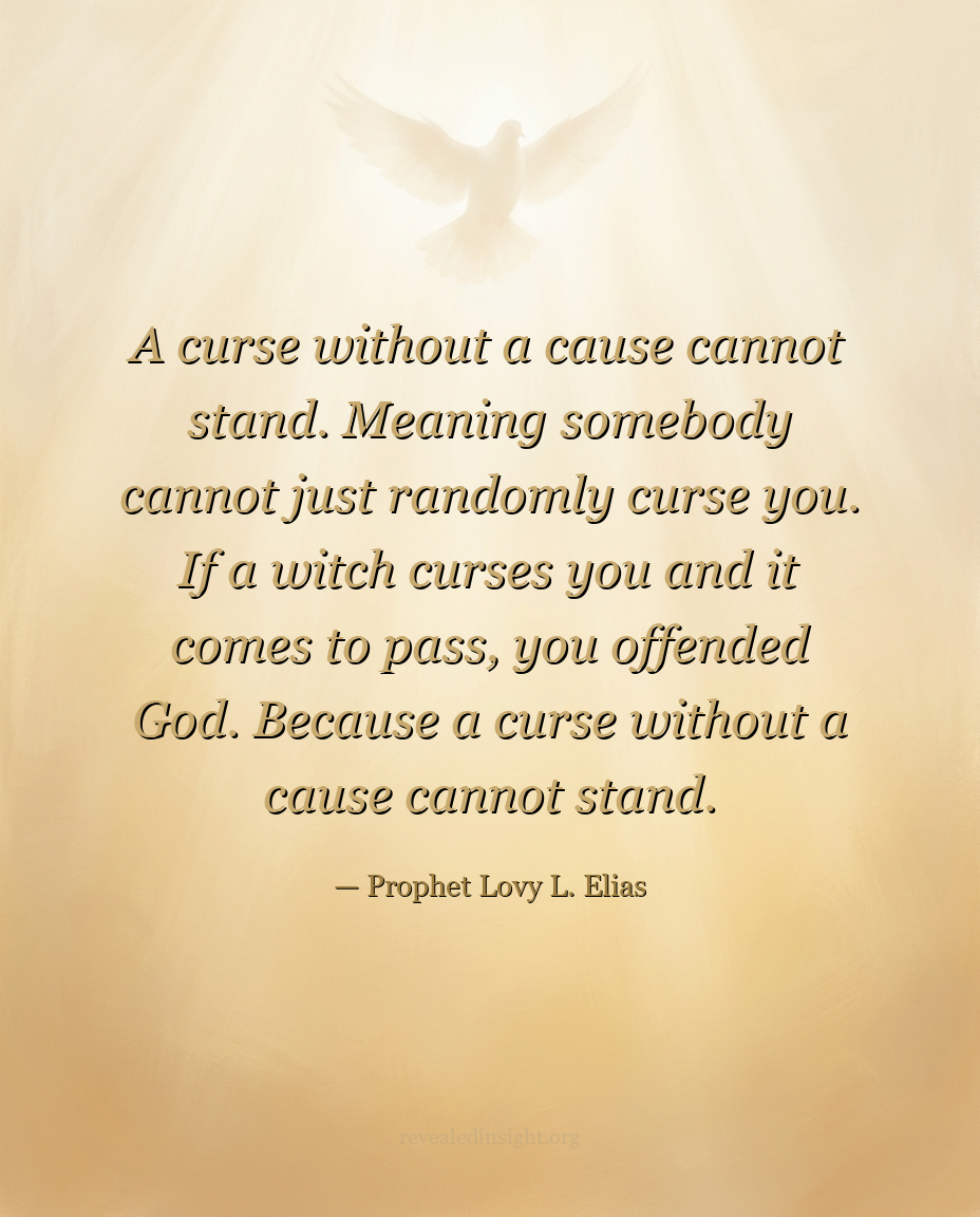 "The Bible is saying this: a curse without a cause cannot stand. Meaning somebody cannot just randomly curse you. If a witch curses you and it comes to pass, you offended God. Because a curse without a cause cannot stand."