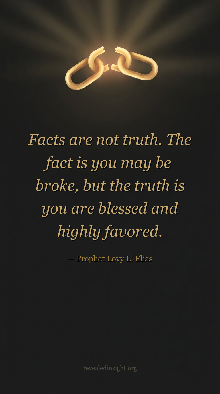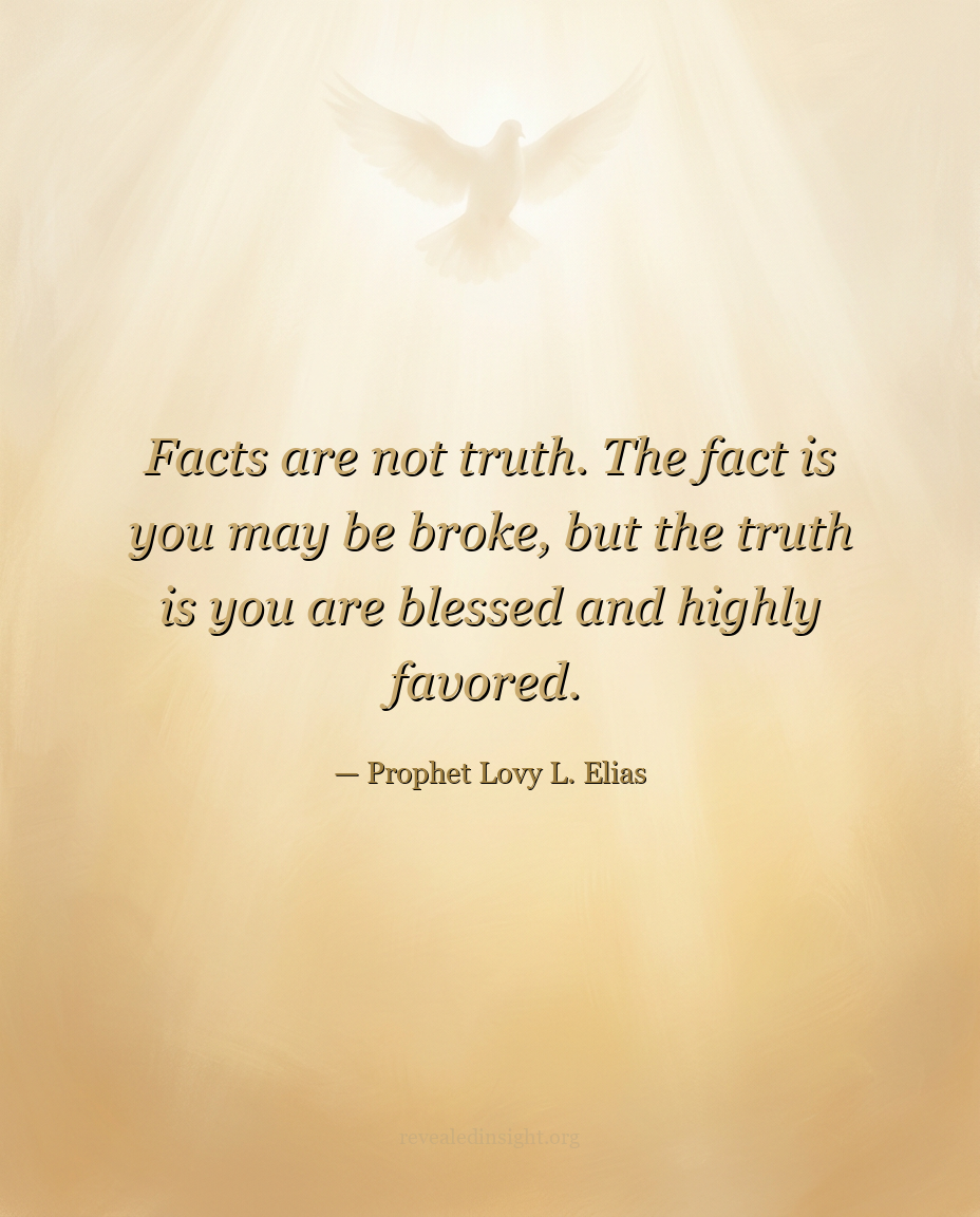 "Facts are not truth. The fact is you may be broke, but the truth is you are blessed and highly favored."