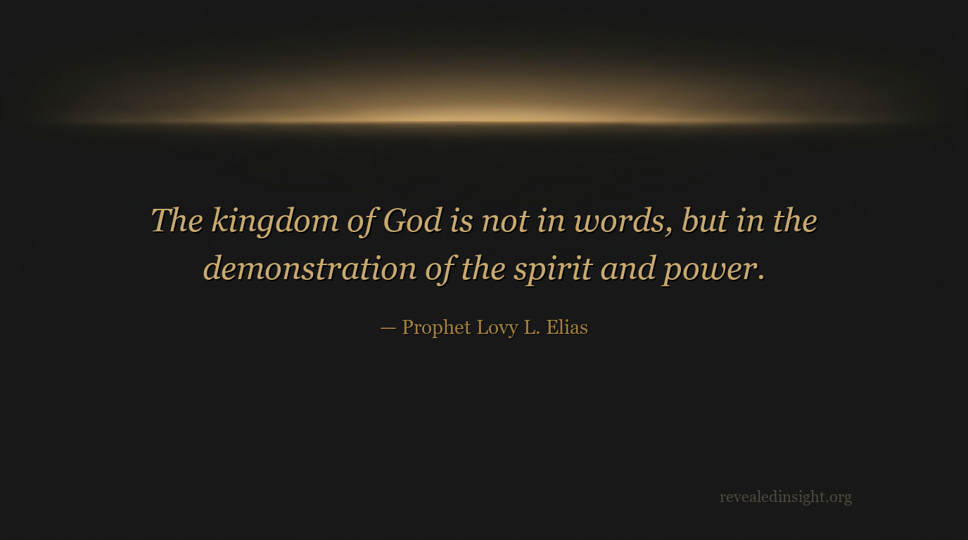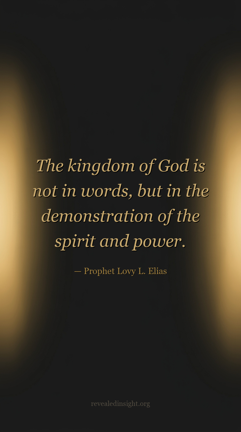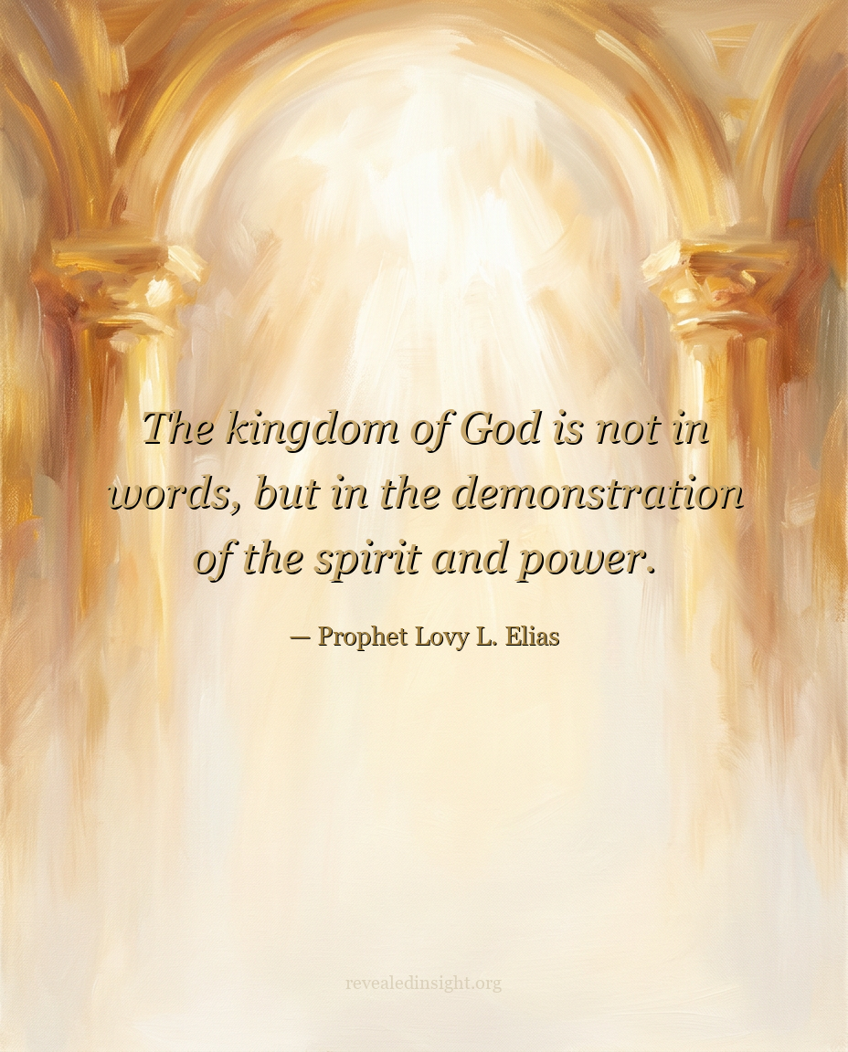 "The kingdom of God is not in words, but in the demonstration of the spirit and power."