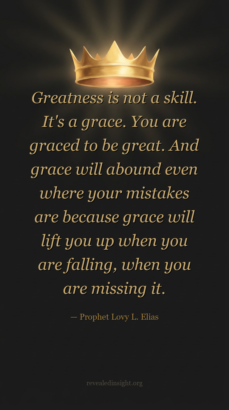 "Greatness is not a skill. It's a grace. You are graced to be great. And grace will abound even where your mistakes are because grace will lift you up when you are falling, when you are missing it."