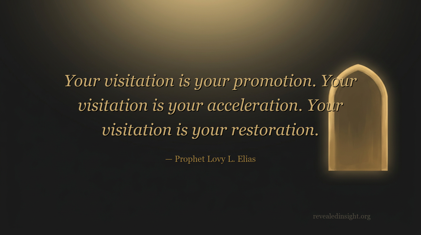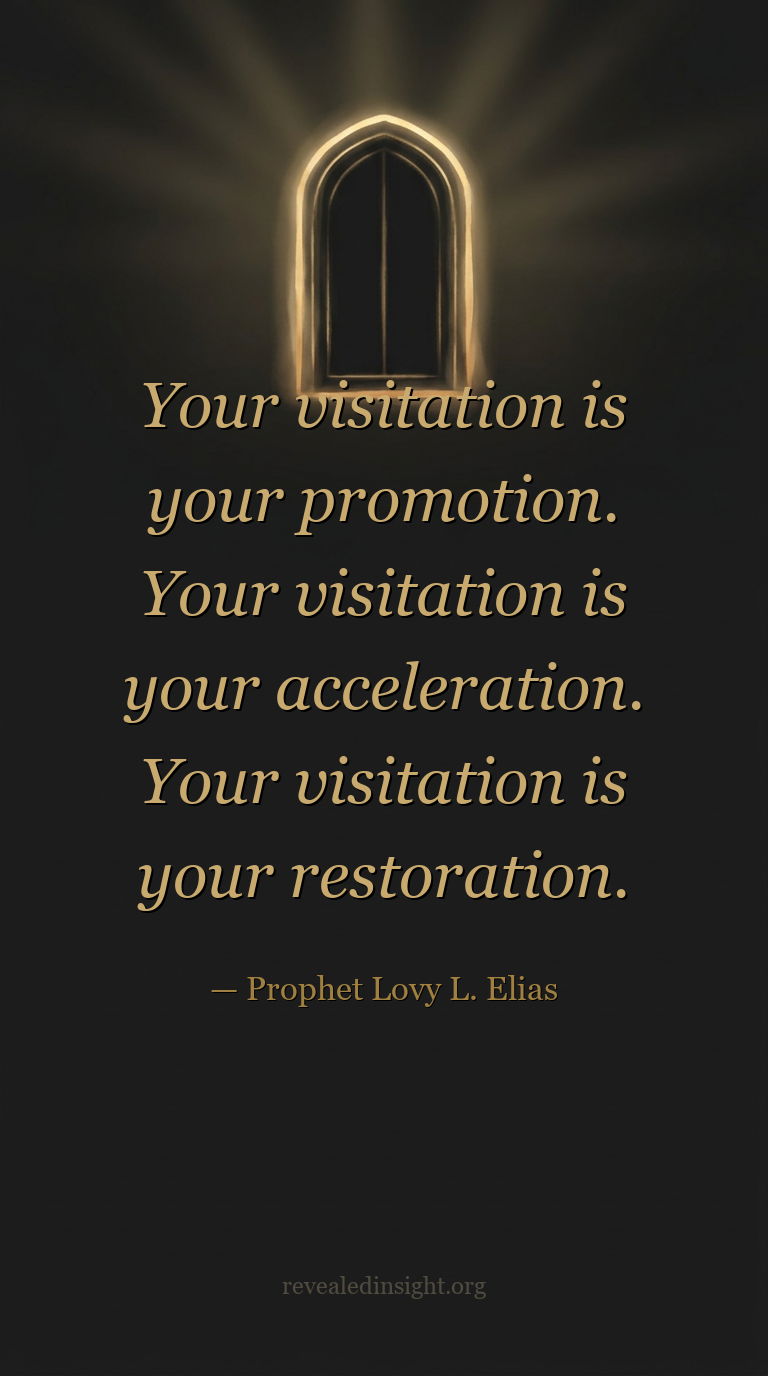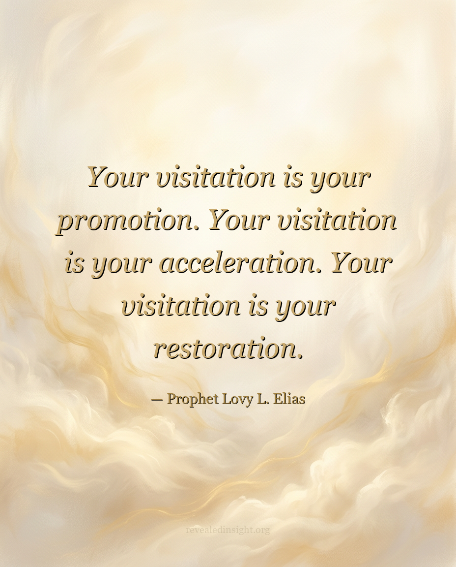 "Your visitation is your promotion. Your visitation is your acceleration. Your visitation is your restoration."