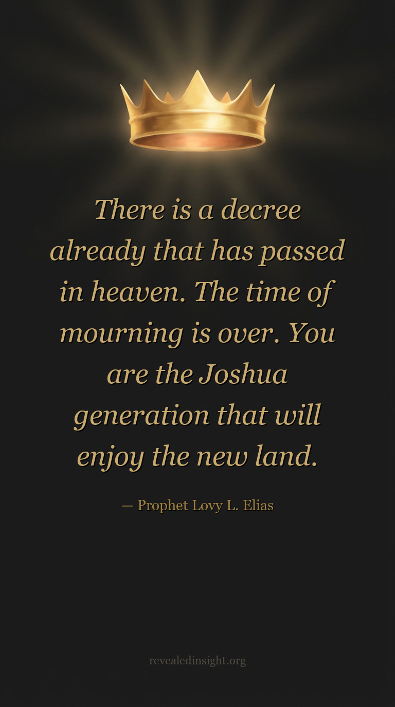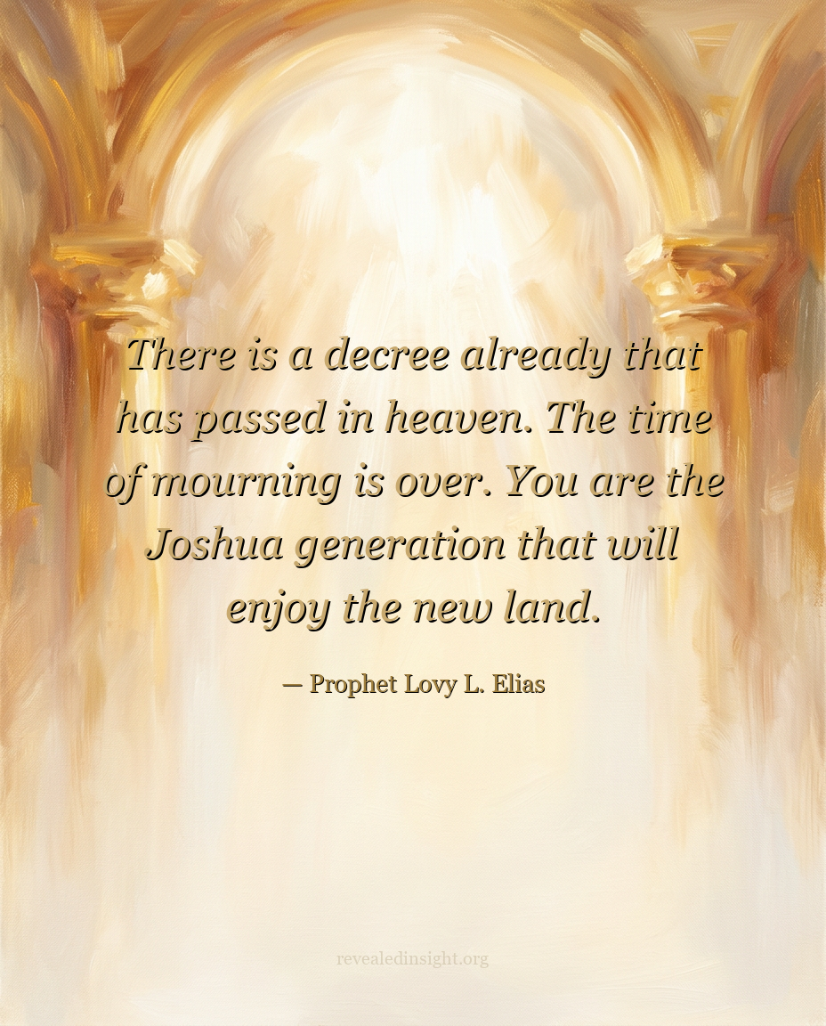 - There is a decree that has already passed in heaven; the time of mourning is over, and you are the Joshua generation that will enjoy the new land and inherit what previous generations could not.