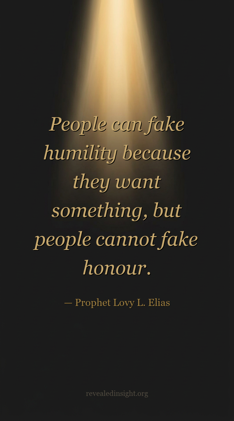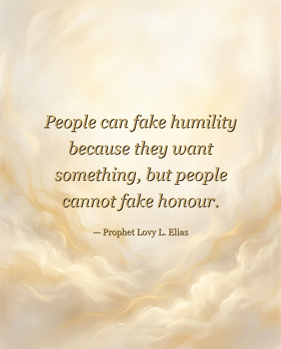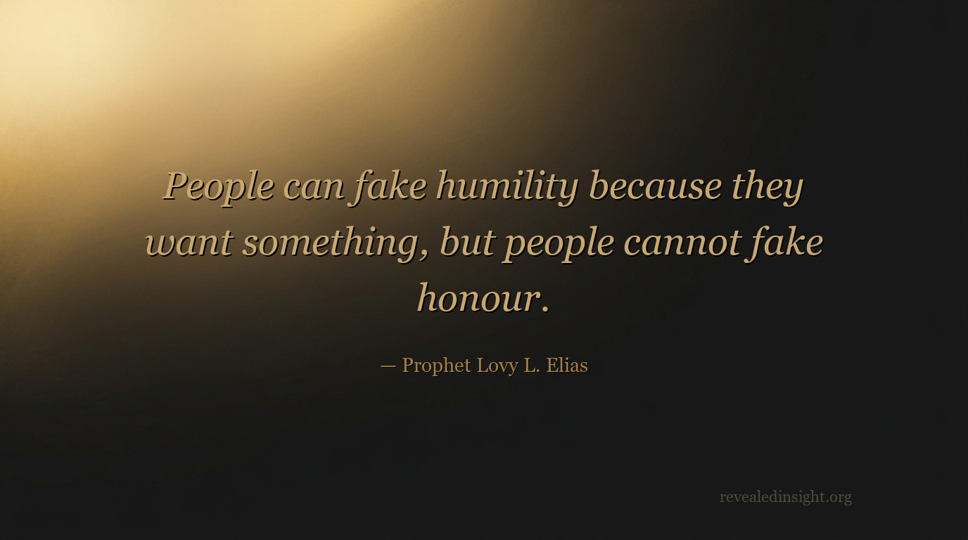 - Honor cannot be faked, because honor is only by revelation — Those who honor genuinely receive secrets and deeper revelation; those who simulate humility for personal gain receive nothing of lasting spiritual substance.