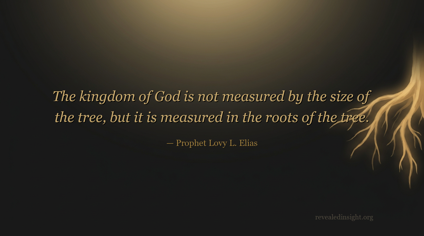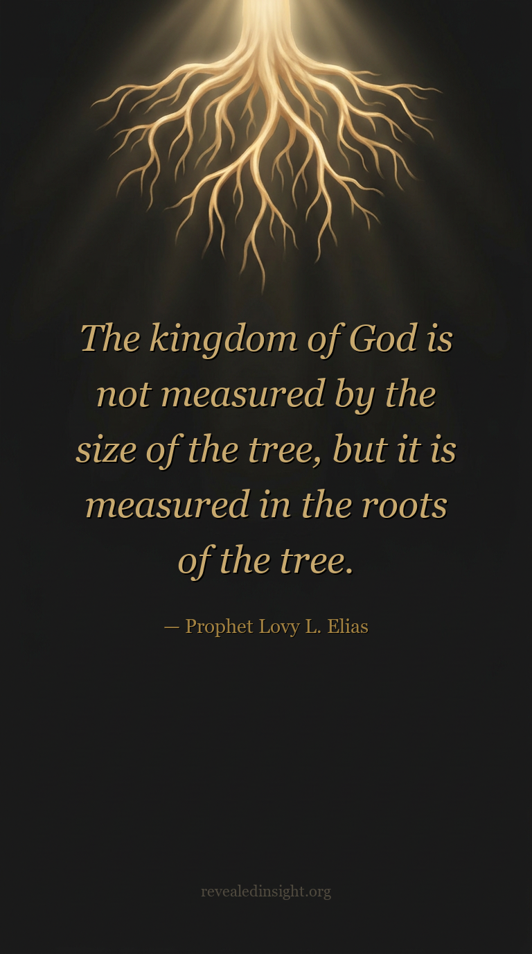 - A tree cannot develop roots if it is constantly moving — the Kingdom of God is not measured by the size of the tree but by the depth of its roots.