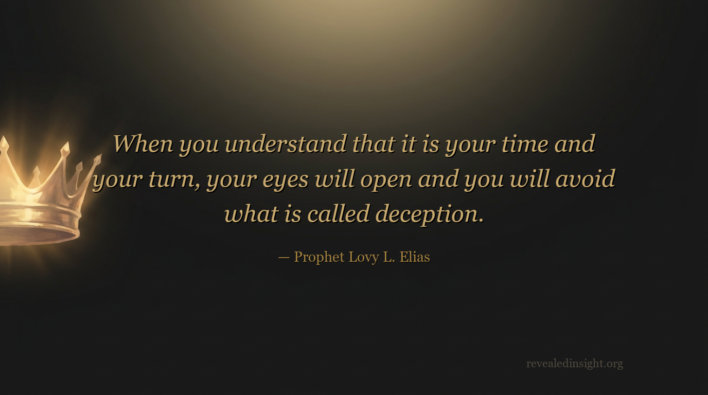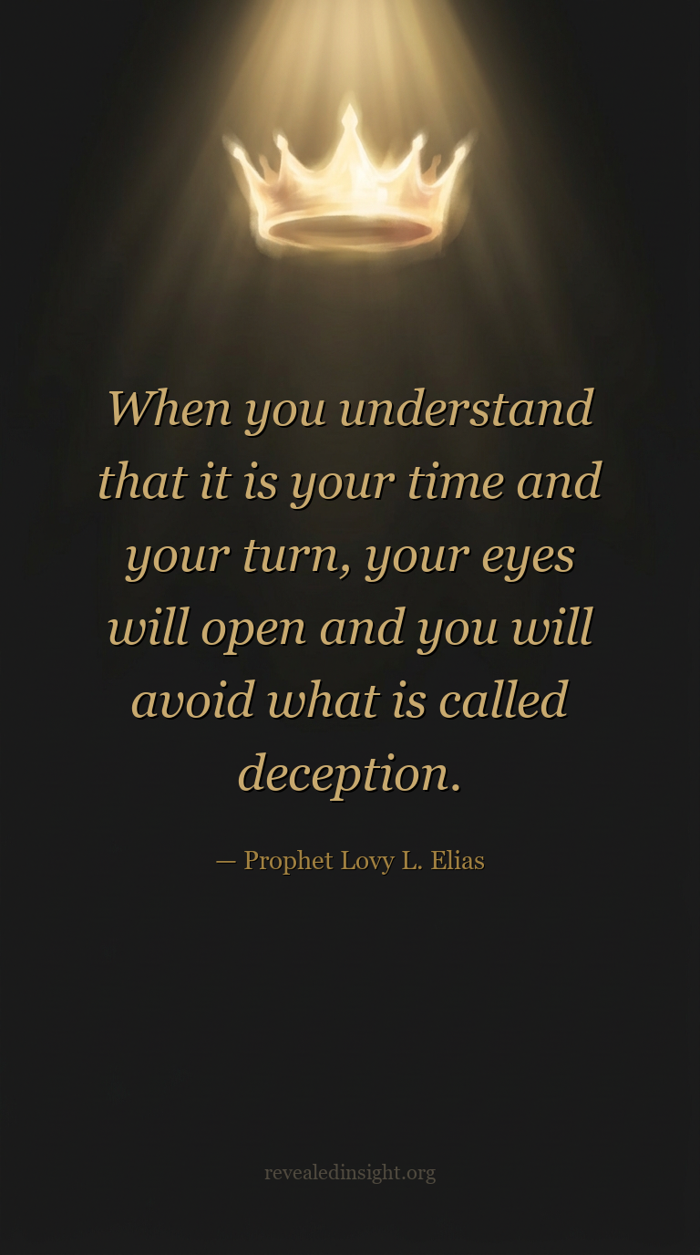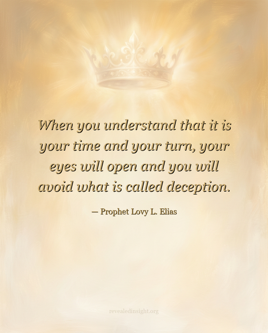 - Understanding that it is your time and your turn opens your eyes and positions you to avoid deception.