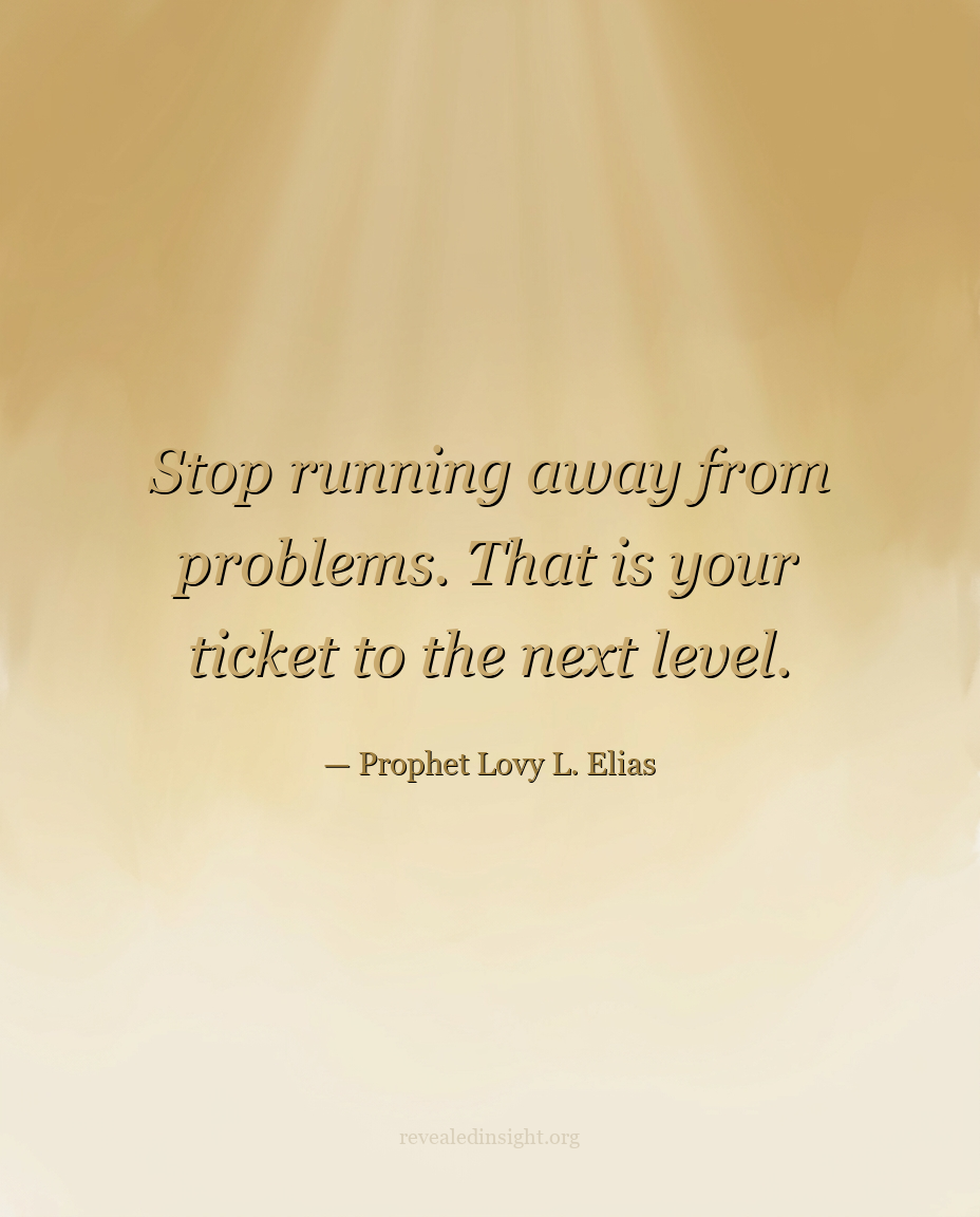 "Stop running away from problems. That is your ticket to the next level."