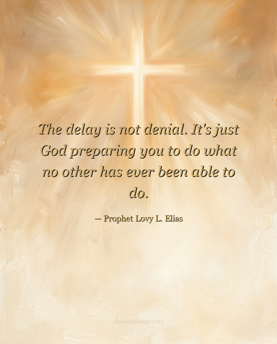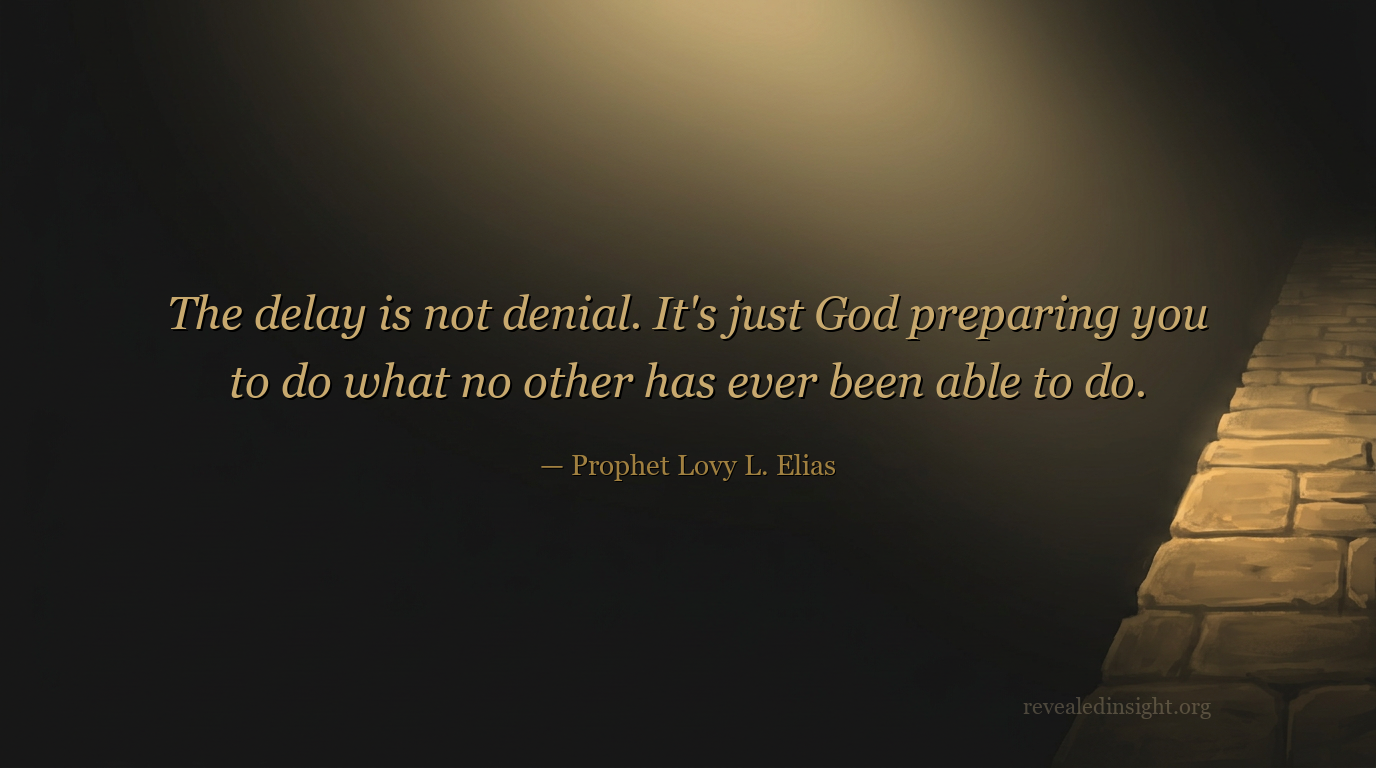 "The delay is not denial. It's just God preparing you to do what no other has ever been able to do."