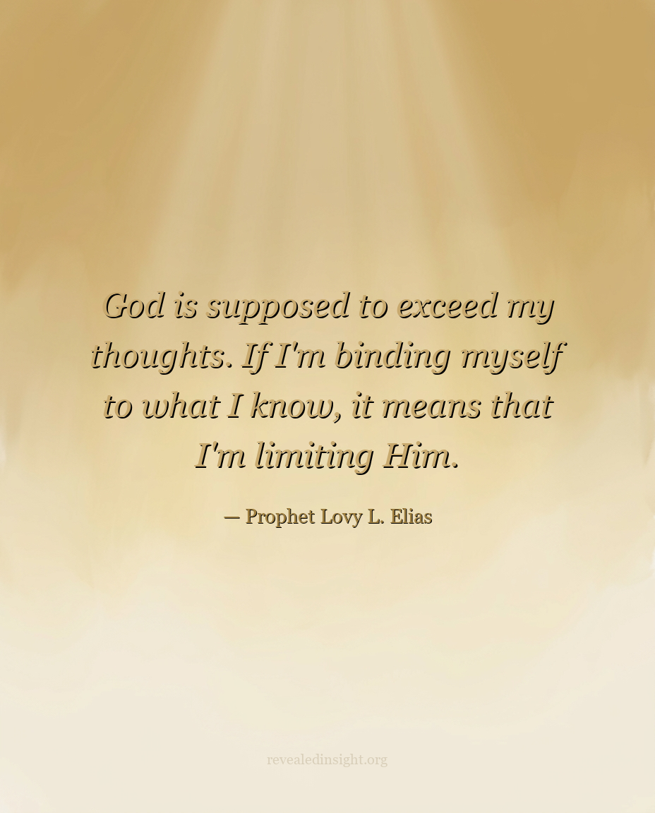 "God is supposed to exceed my thoughts. If I'm binding myself to what I know, it means that I'm limiting Him."