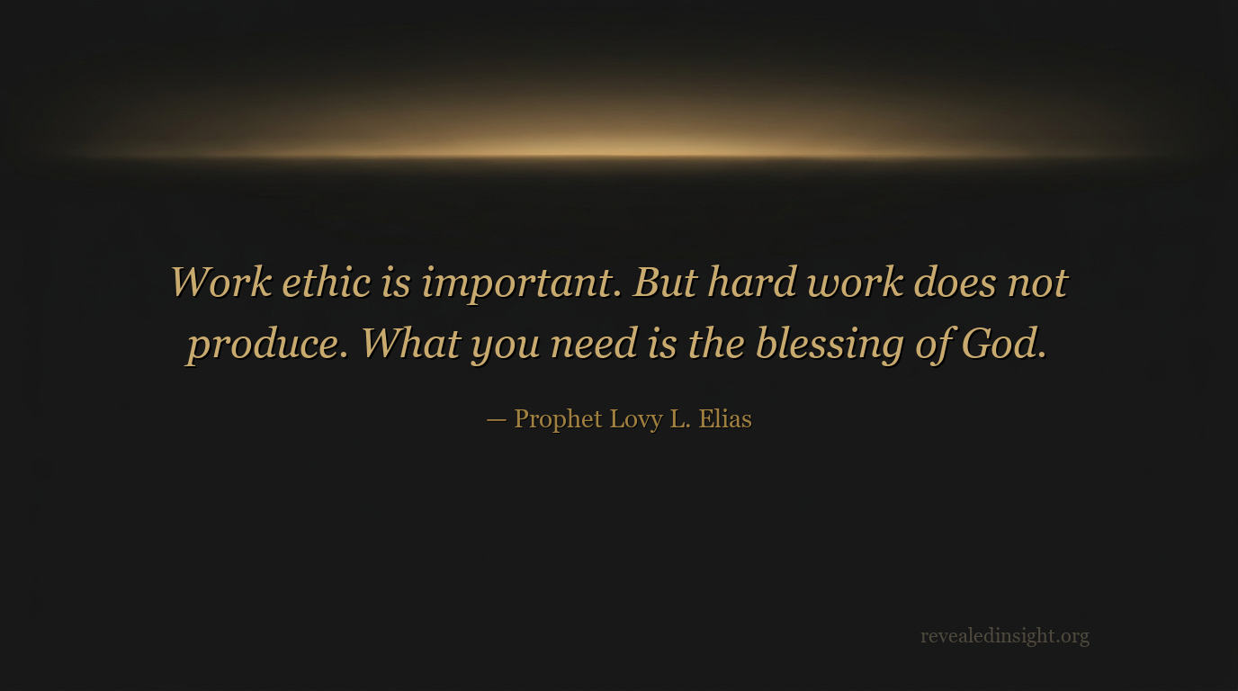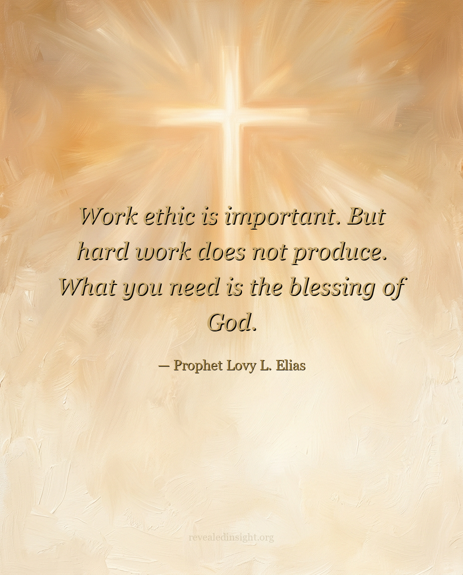 - Work ethic is important, but hard work alone does not produce — what is needed is the blessing of God, and people who work hard are still poor without it.