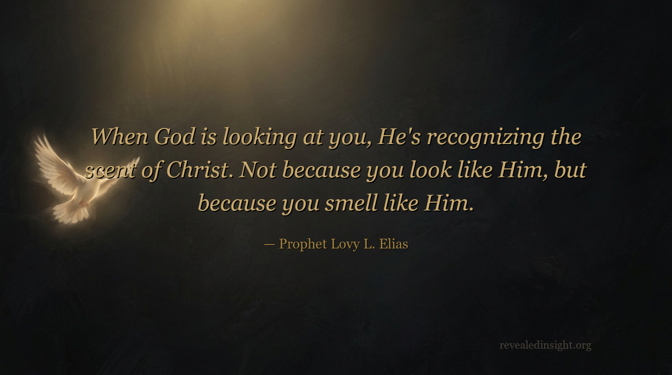 "When God is looking at you, he's recognizing the scent of Christ. So when he looks at you, he's seeing Jesus. Not because you look like him, but because you smell like him. Because spirits recognize you by the scent that you carry, not just by how you look. The confirmation of how you look is how you smell."