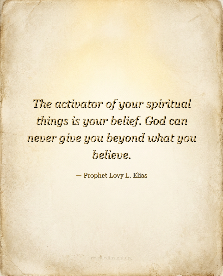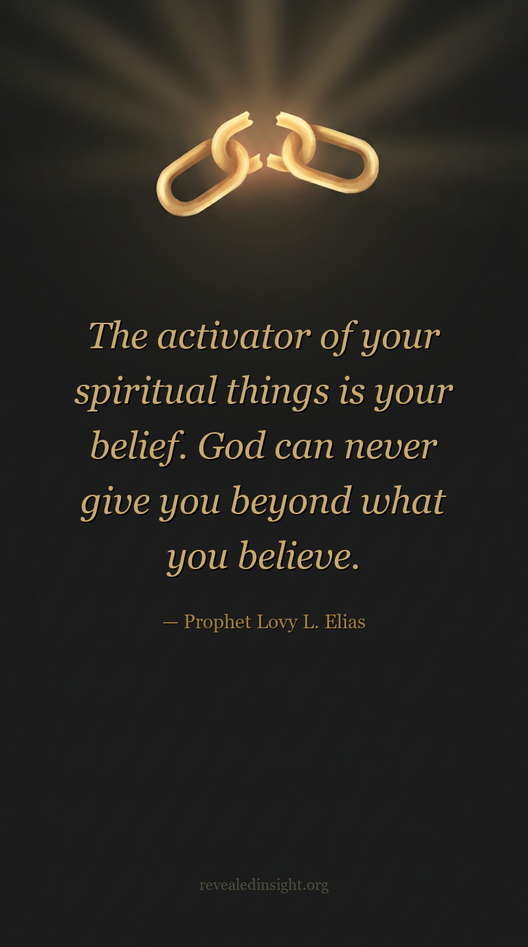 - The activator of every spiritual thing in a believer's life is belief — God can show a person a possibility, but He cannot give beyond what they believe.
