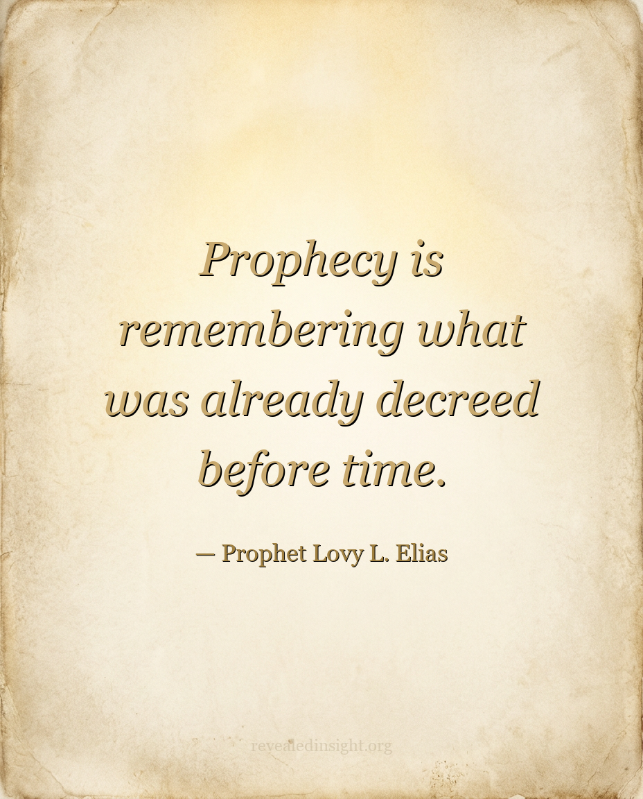- Prophecy is the recovery of what was already decreed in eternity — your calling, your birth, and your design were settled before time; prophecy aligns you with what already exists in the spirit.