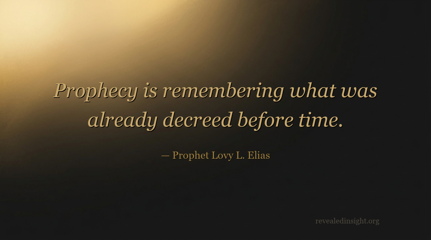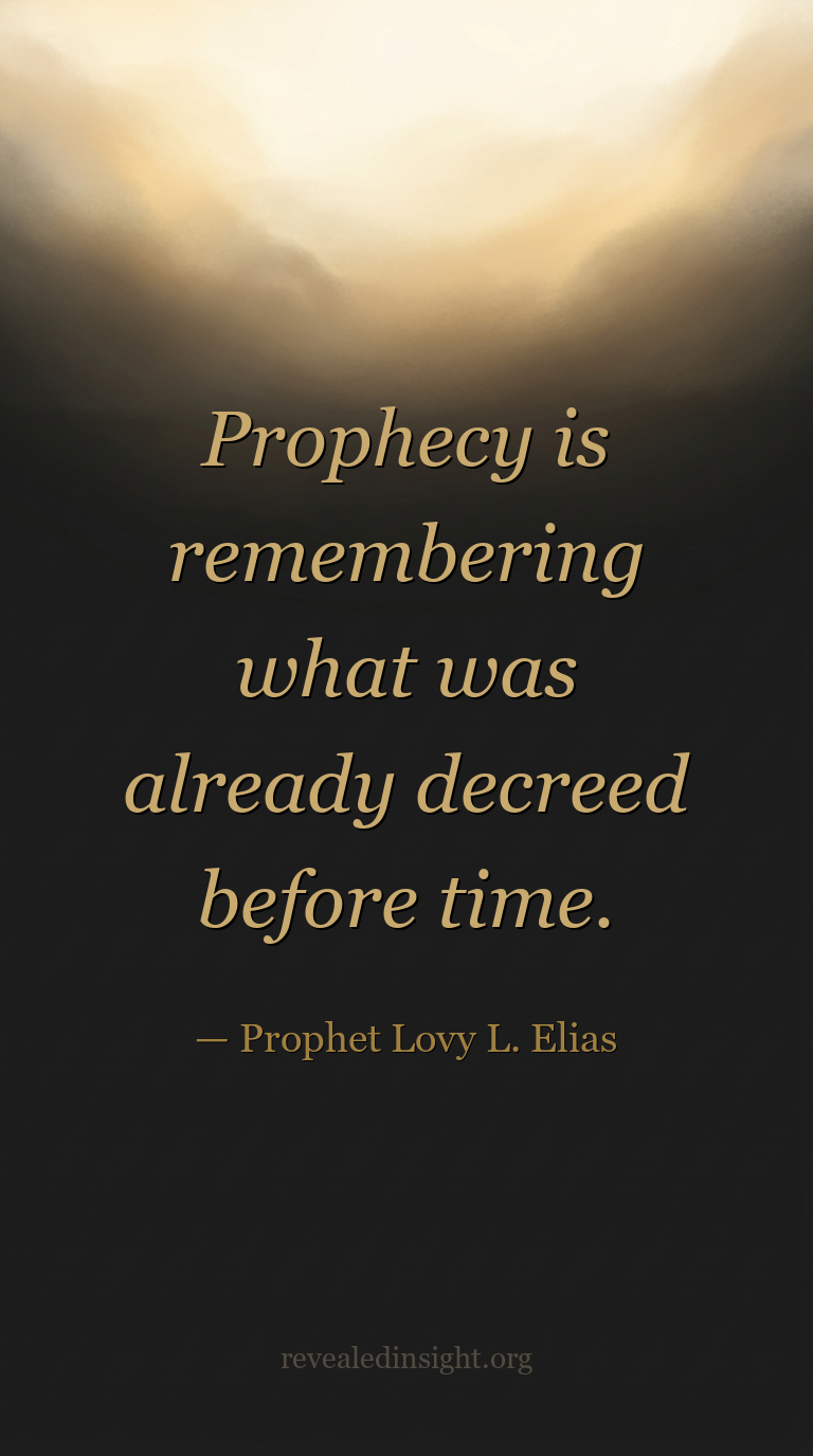 - Prophecy is not invention — it is the act of remembering what was already decreed before time; it calls into time what already exists in eternity.