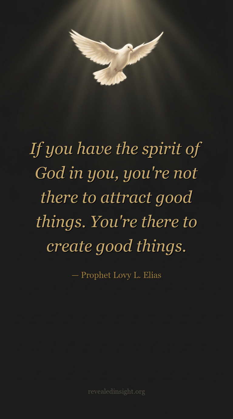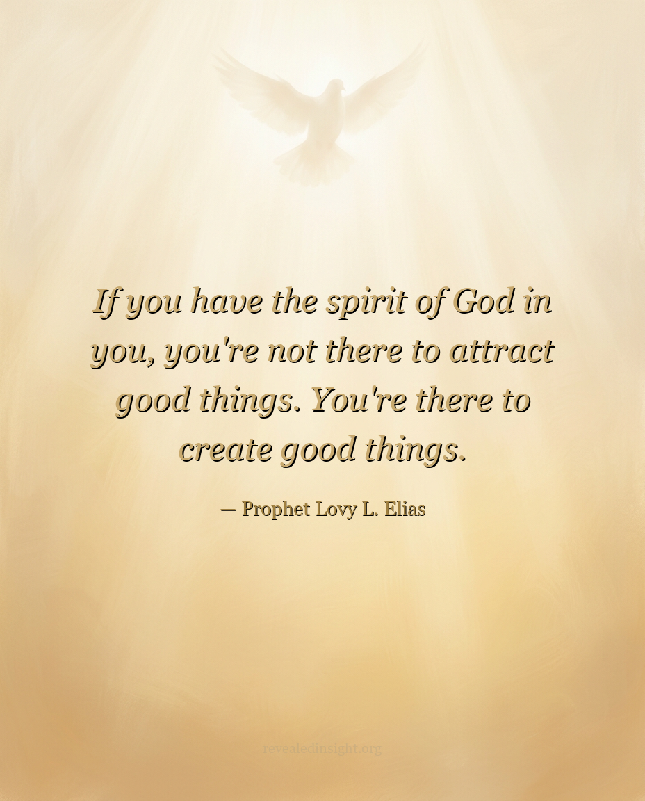 - Those who carry the Spirit of God are not positioned to attract good things; they are positioned to create them.