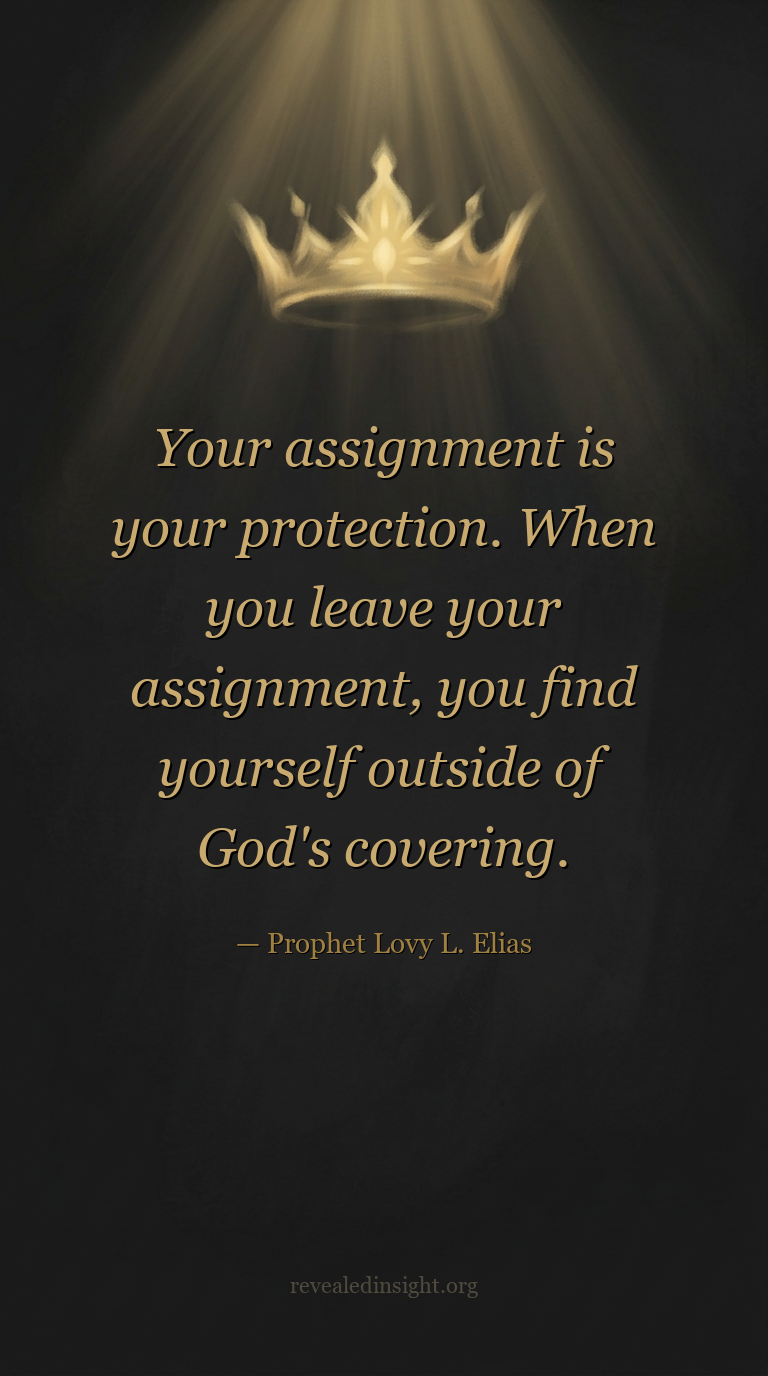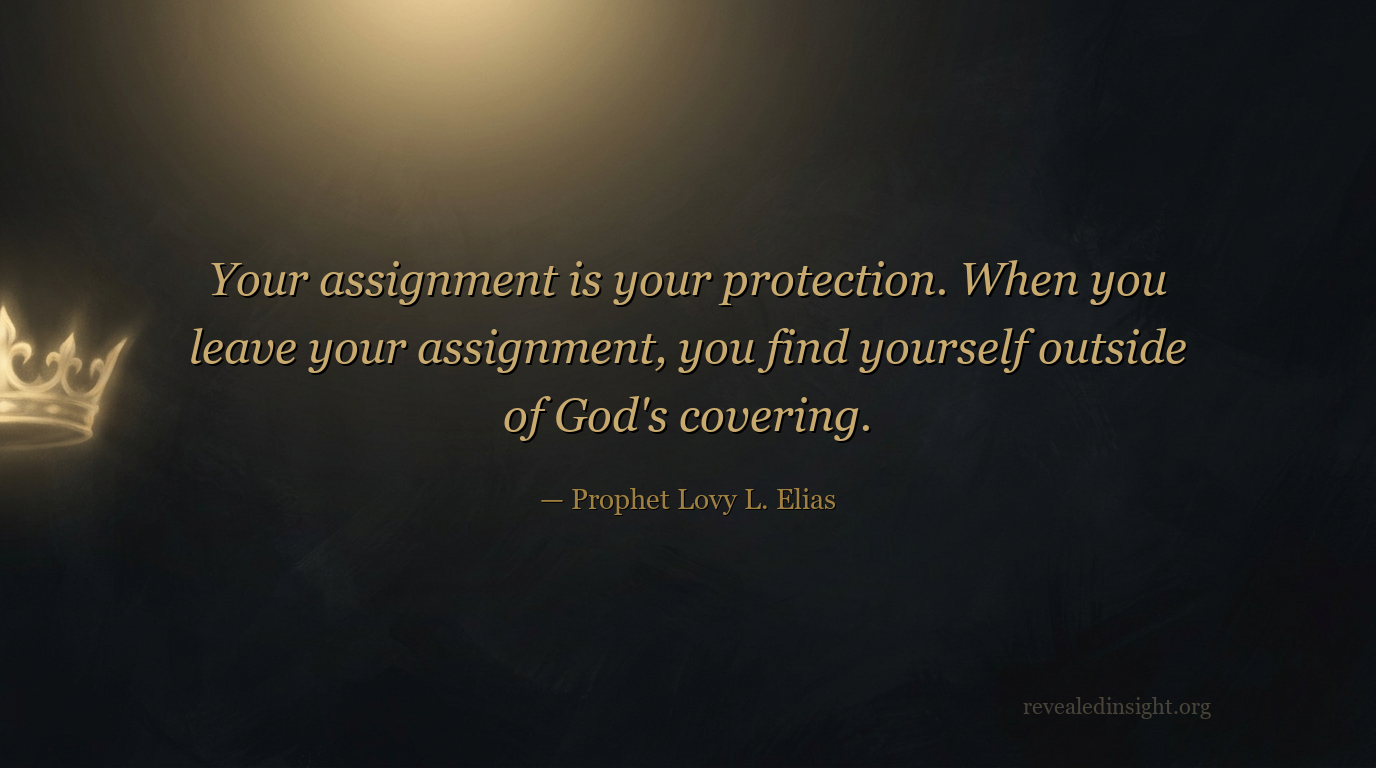 "Your assignment is your protection. When you leave your assignment, you find yourself outside of God's covering."