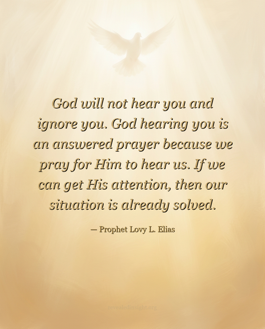 "God will not hear you and ignore you. God hearing you is an answered prayer because we pray for Him to hear us. If we can get His attention, then our situation is already solved."