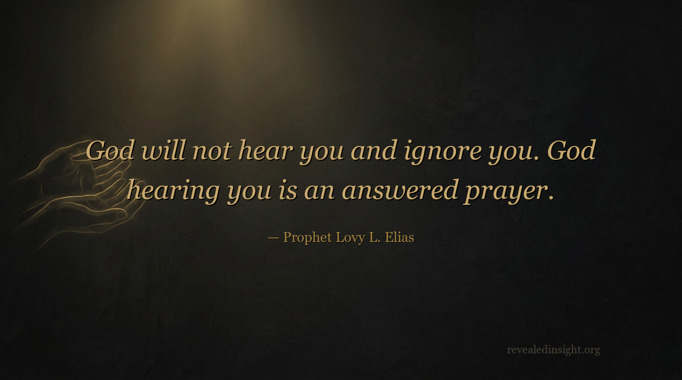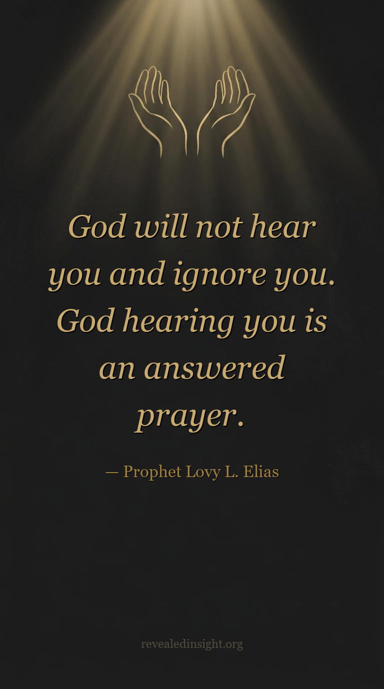 "God will not hear you and ignore you. God hearing you is an answered prayer because we pray for him to hear us. If we can get his attention, then our situation is already solved."