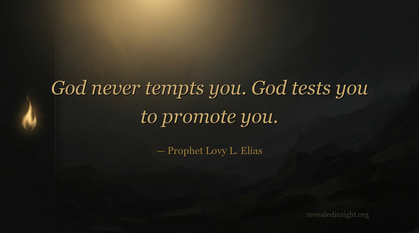 "God never tempts you. God tests you to promote you."